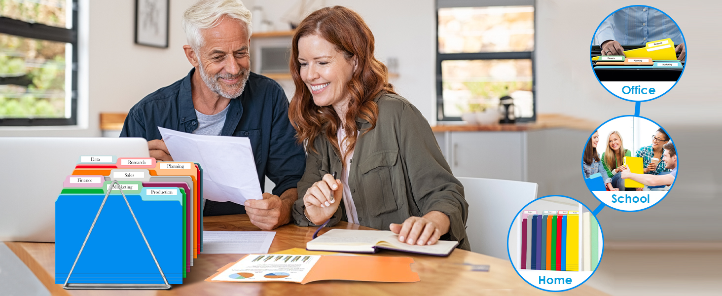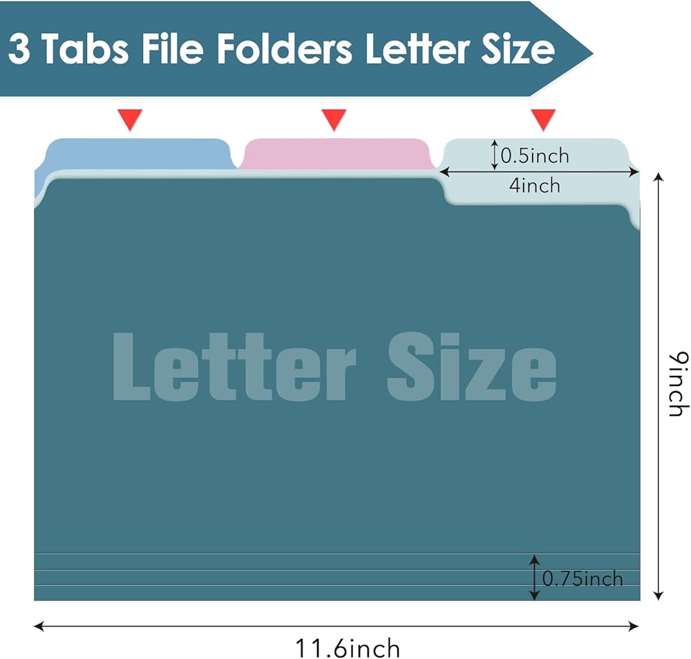مستندات بحجم Letter - 3 مجلدات ملفات مكتبية (11.6 بوصة عرض × 9.5 بوصة ارتفاع إجمالي، 9 بوصة ارتفاع) تناسب المستندات ذات الحجم القياسي (8.5 بوصة عرض × 11 بوصة ارتفاع) ويمكن استخدامها مع أنظمة الملفات المعلقة للحصول على ملفات كاملة حل حفظ الملفات مثالي للمستندات بحجم الحروف أو الفواتير الأخرى، والوصفات، والمشاريع، والمراسلات، وسجلات المركبات، ومعلومات العميل، والمزيد.