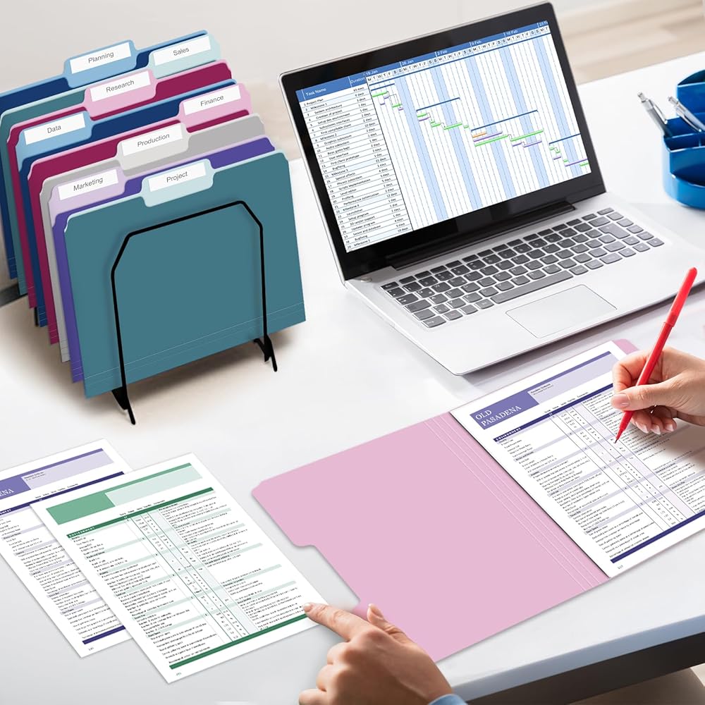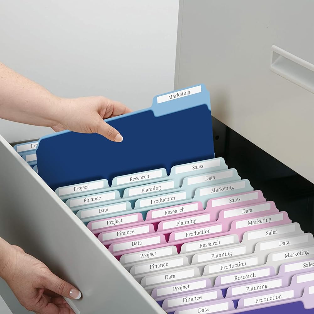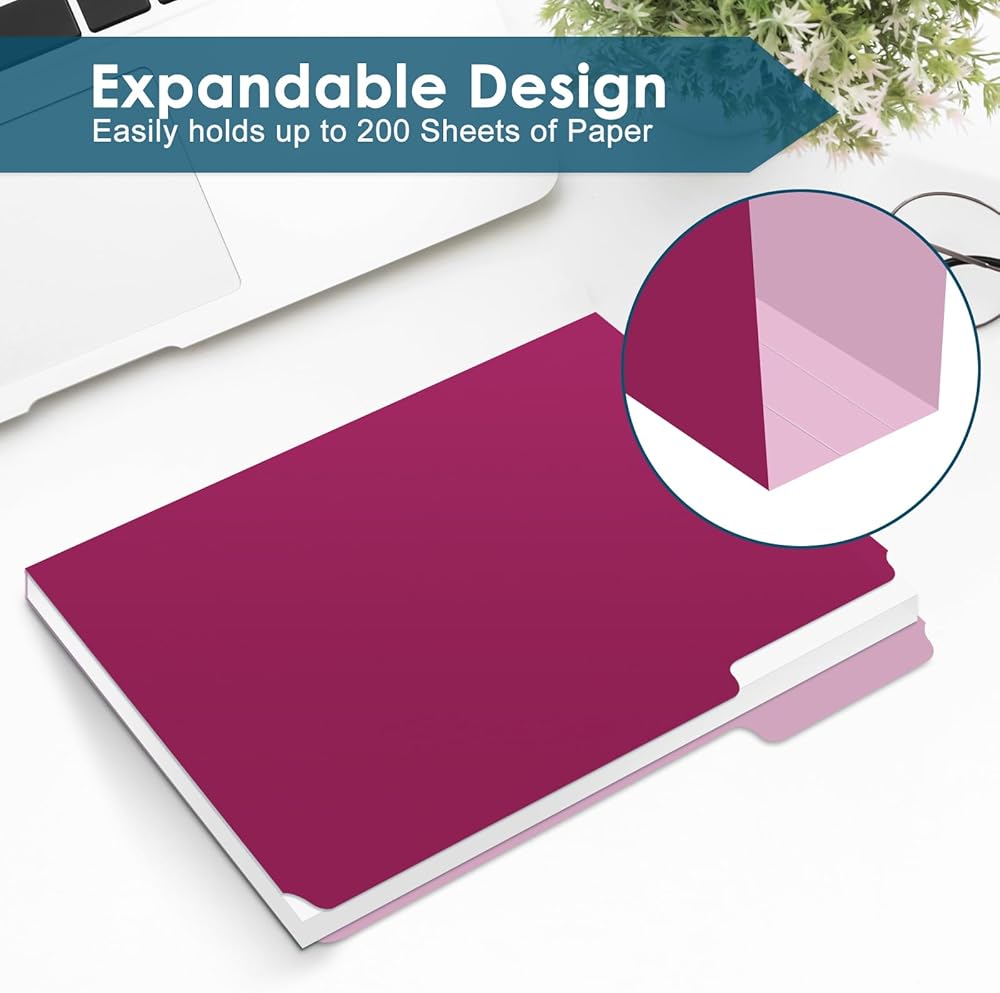 ألوان متنوعة ذات درجتين - قم بإضفاء البهجة على خزانة الملفات الخاصة بك باستخدام 10 مجلدات ملفات جميلة بلون الجواهر، مما يسمح لك بالعثور على الملف المناسب من خلال رابطة الألوان. تحتوي مجلدات الملفات الملونة ذات اللونين على تصميمات داخلية خفيفة لتسهيل وضع علامة بالقلم، مما يسهل العثور على ما تحتاجه في لمحة سريعة ويمنع وضع الملفات في مكان غير مقصود بين المجلدات.