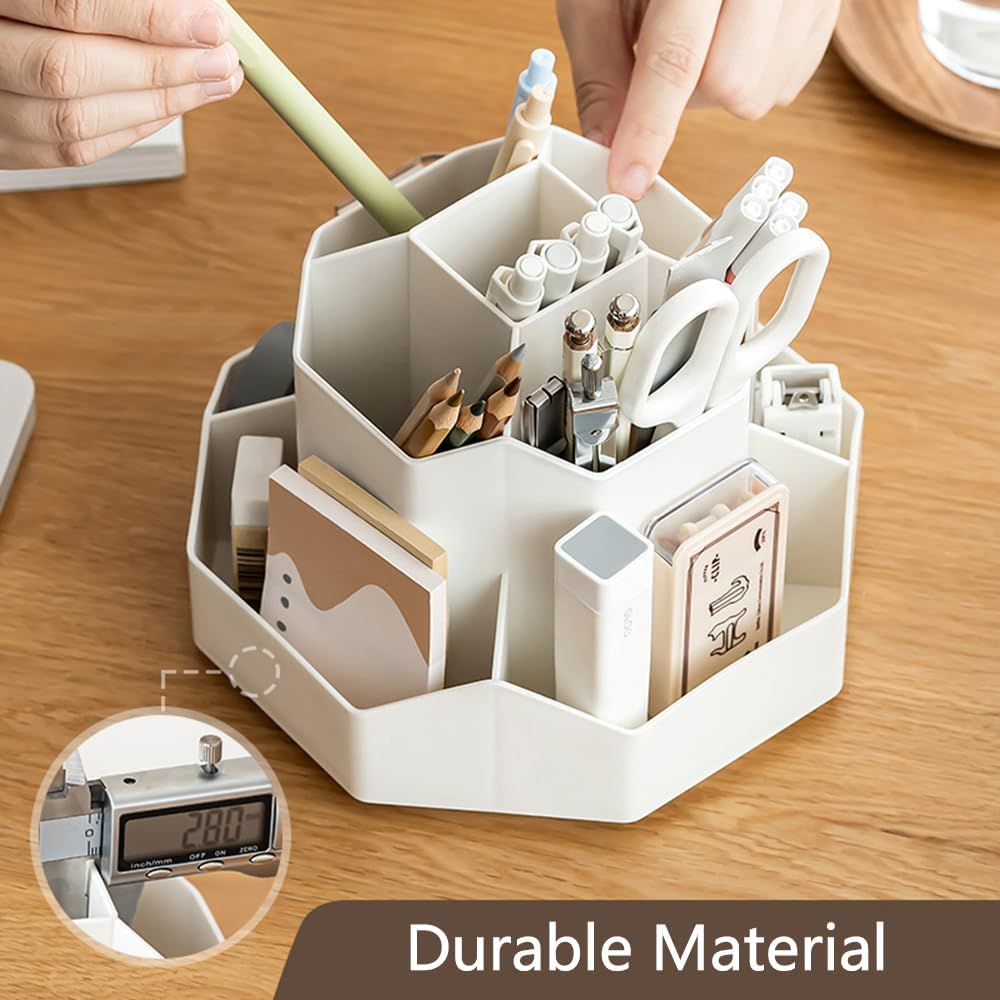 استخدامات متعددة: يحتوي حامل القلم الدوار على العديد من الاستخدامات، وليس فقط للأقلام. كما أنها رائعة لحمل جهاز التحكم عن بعد وأدوات الخياطة والمقص والنظارات وفرش المكياج وما إلى ذلك. مثالية للطلاب أو الأطفال أو المعلمين أو التنظيم المنزلي. حافظ على مكتبك خاليًا من الفوضى.