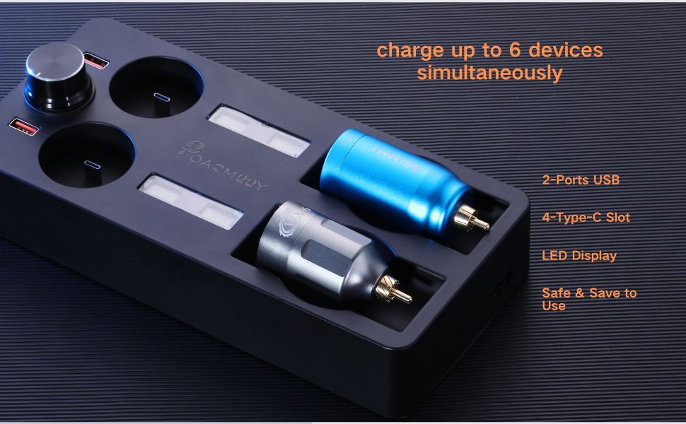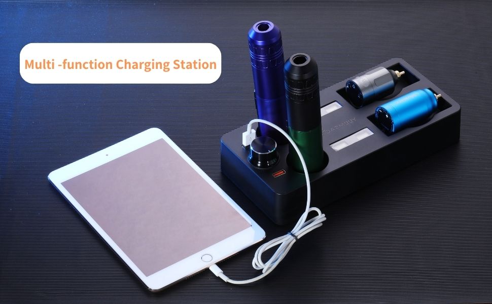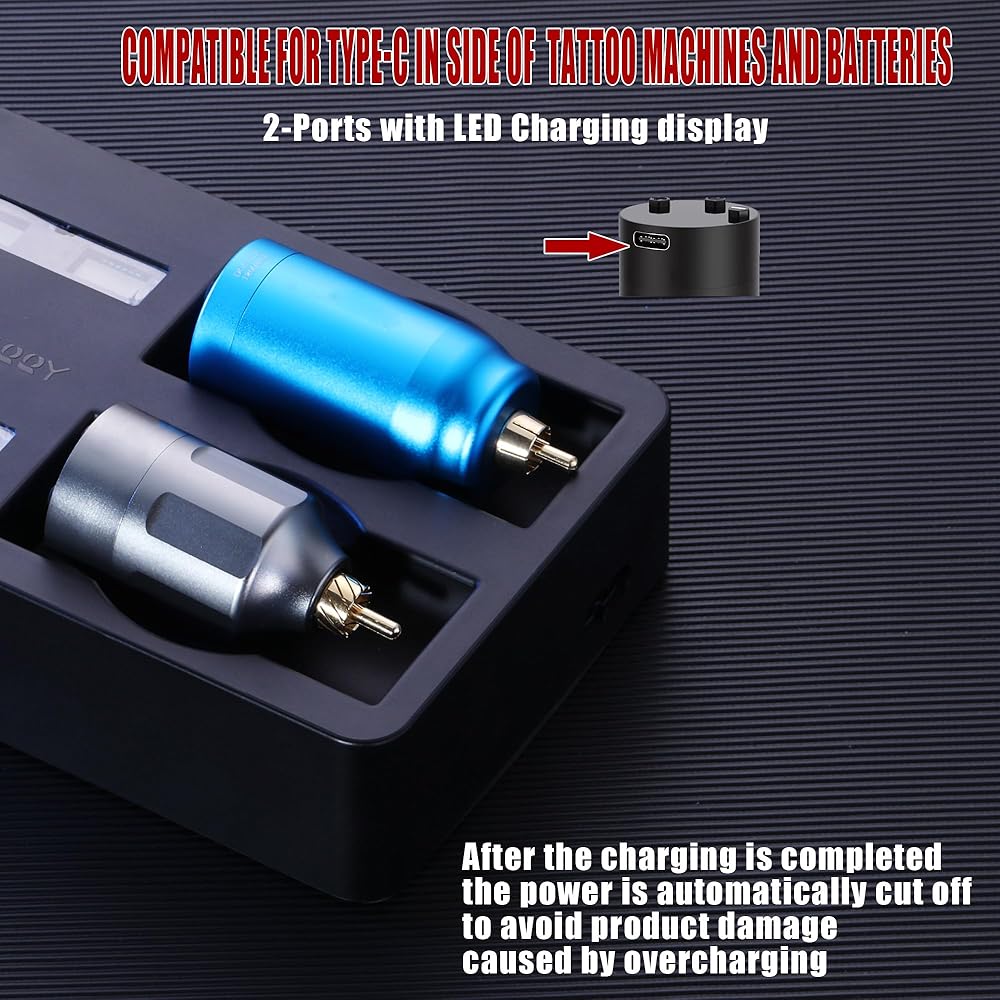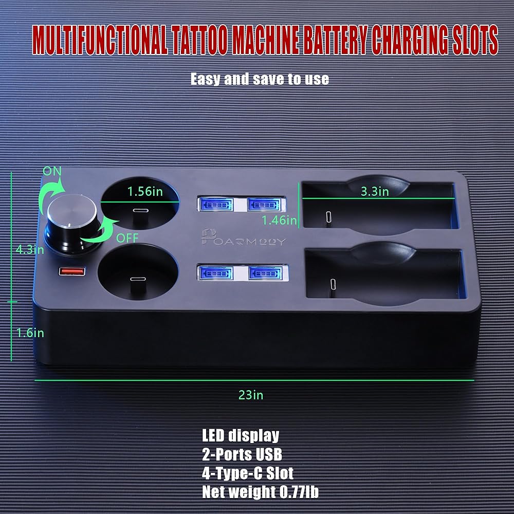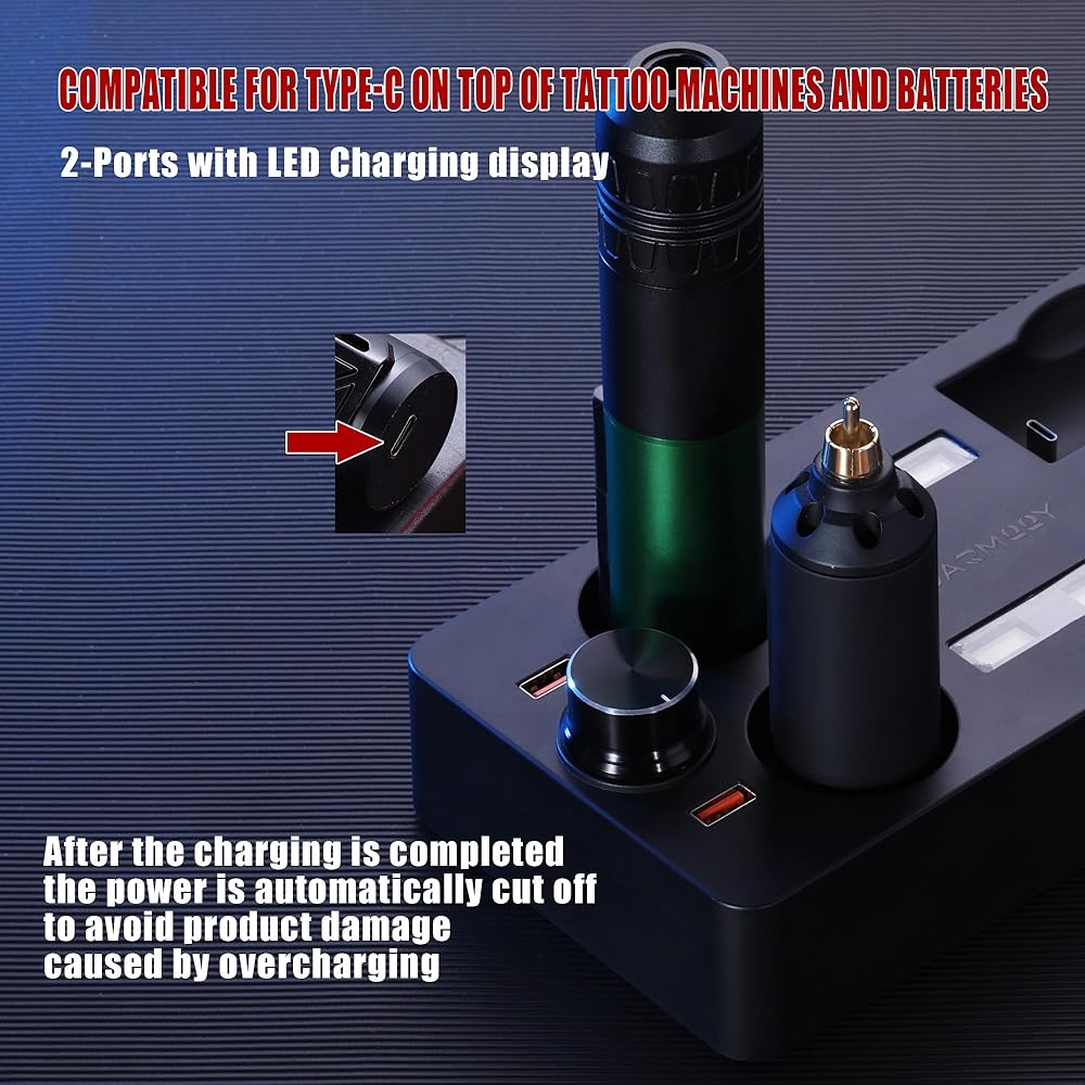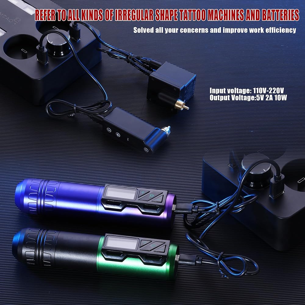 【شاحن متعدد الوظائف】محطة شحن USB بمنفذين، تشير إلى جميع أنواع آلات الوشم والبطاريات ذات الشكل غير المنتظم، وحل جميع مخاوفك وتحسين كفاءة العمل.