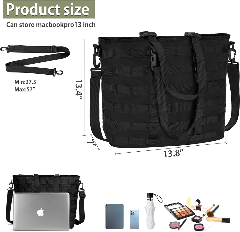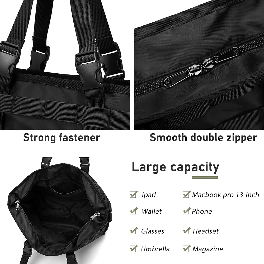 Tote Bag for Women, TORIBIO Large Large Work Tote Bag 13 Inch Computer Shoulder Bag Nylon Crossbody Bag Lightweight Handbag for Office Work Travel, Black