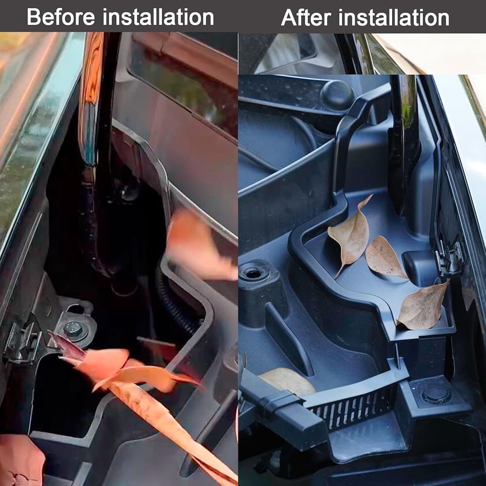 【واقي ممتاز】قناة شبكة دليل المياه المضادة للانسداد لفلتر صندوق السيارة الأمامي تحجب بشكل فعال الأوراق والأشتات الموجودة في حجرة المحرك وهيكل السيارة، وتوجيه مياه الأمطار من خلال قناة الشبكة، وتمنع تراكم المياه وأشعة الشمس من التسبب في تلف السيارة. من أجل تيسلا موديل y اكسسوارات 2024.