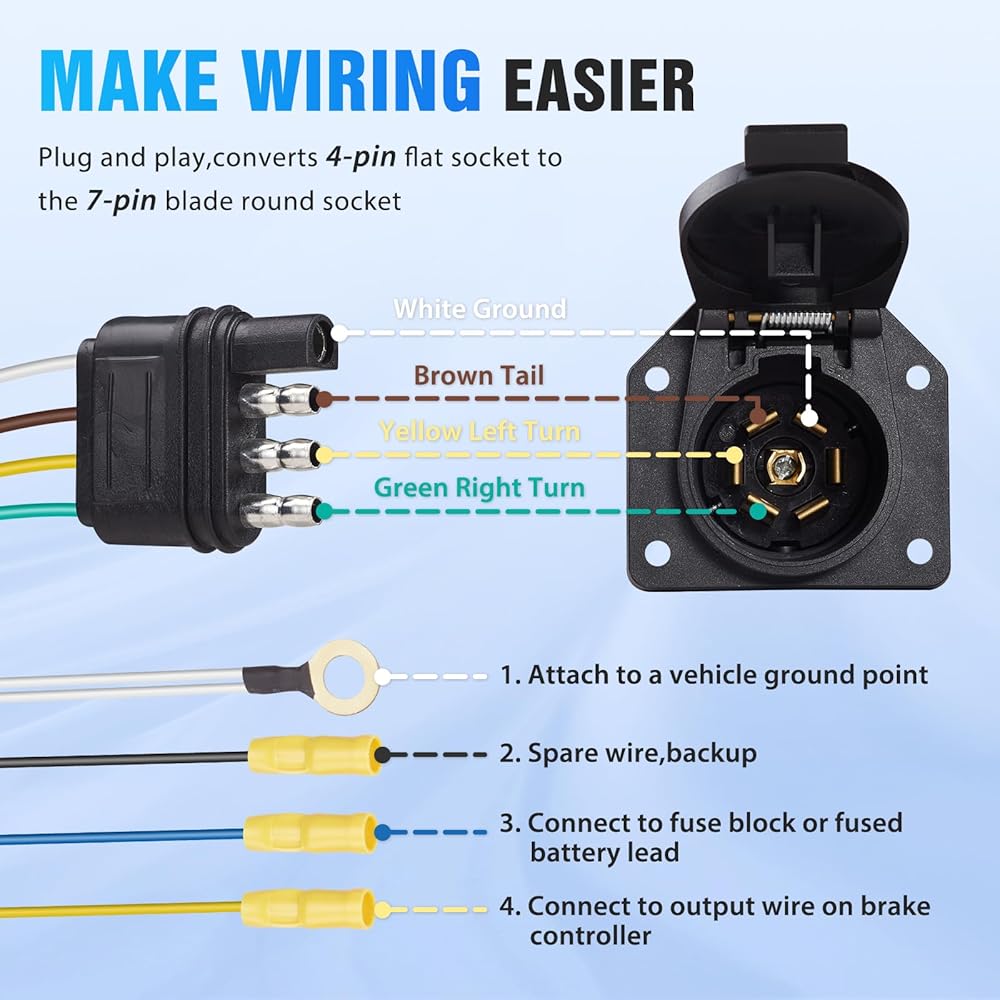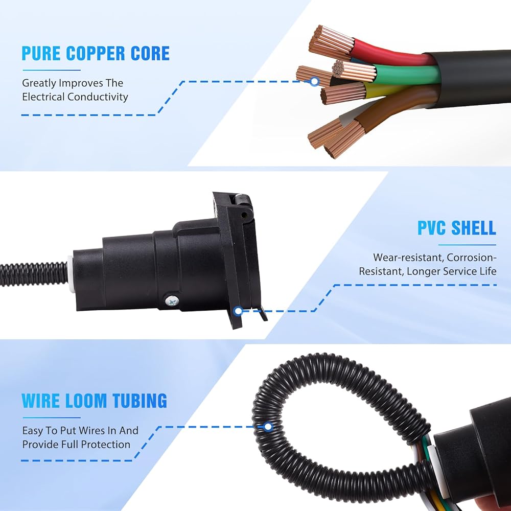 【متانة فائقة】 موصل المقطورة TOPSEENG مصنوع من بلاستيك ABS الثقيل من أجل الوزن الخفيف والمتانة، كما توفر أطراف النحاس وملامسة القصدير توصيلًا كهربائيًا أفضل. مناسب لجميع مركبات السحب التي لا تتطلب فرامل كهربائية، بما في ذلك المقطورات وشبه المقطورات والمركبات الترفيهية وما إلى ذلك.