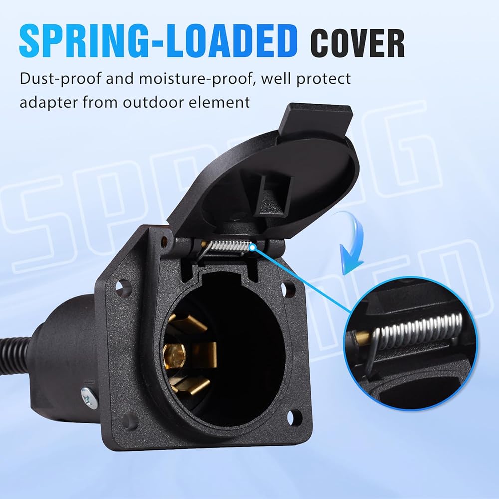 【مقاوم للغبار ومقاوم للماء】مقبس إخراج RV ذو 7 اتجاهات ومسطح بأربعة اتجاهات مزود بغطاء غبار محكم وأغطية محملة بنابض لحمايته من الغبار والماء، مما يحافظ على نظافة الأطراف ويطيل عمرها عند عدم الاستخدام.