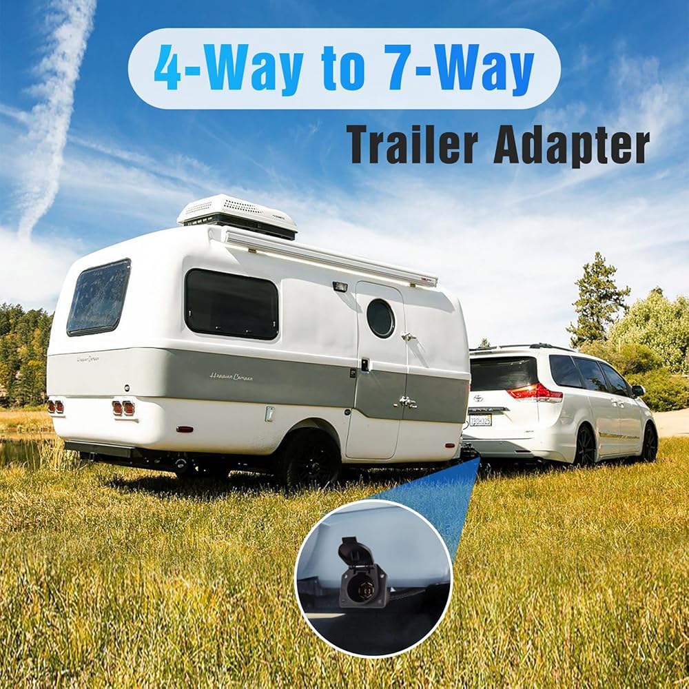 【محول مقطورة عالمي】يوفر محول موصل المقطورة TOPSEENG 4 اتجاهات مسطحة إلى 7 اتجاهات وصلتين قياسيتين للمقطورة، وشفرة RV ذات 7 دبابيس ومقبس مسطح بأربعة اتجاهات لخيارات السحب المتعددة. أسلاك إضافية لوظيفة الفرامل والعكس والطاقة مما يسمح لك بنقل الموصل ذو 4 دبابيس إلى 7 اتجاهات قياسية.