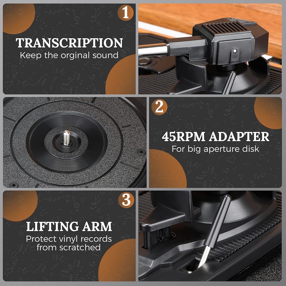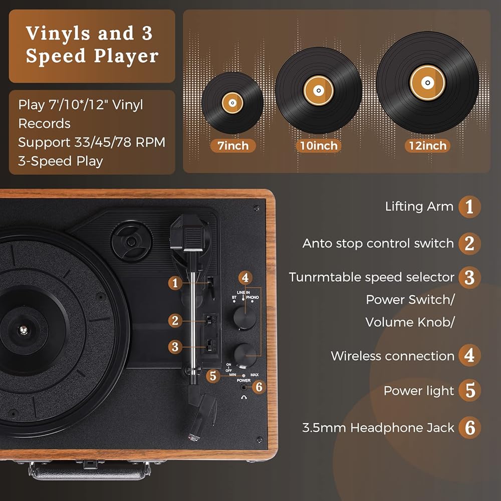 ♫ 【 ثلاث سرعات 】 قابل للتعديل لتشغيل سجلات 33 أو 45 أو 78 دورة في الدقيقة، ومناسبة لمعظم الفينيل. يوفر لك مشغل تسجيل Asmuse Vinyl تجربة موسيقية أفضل.