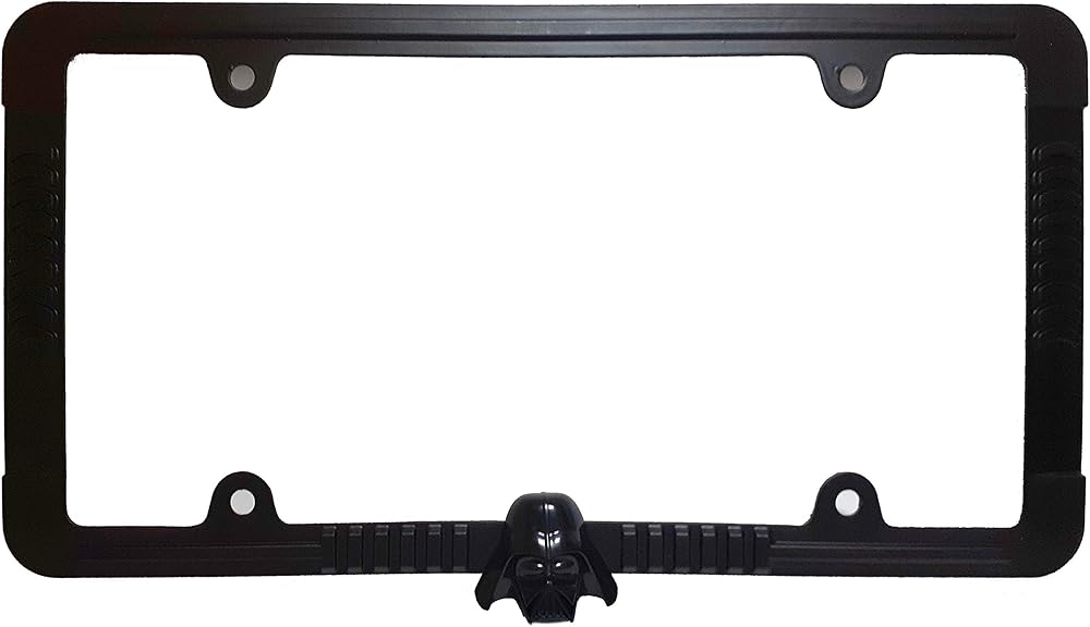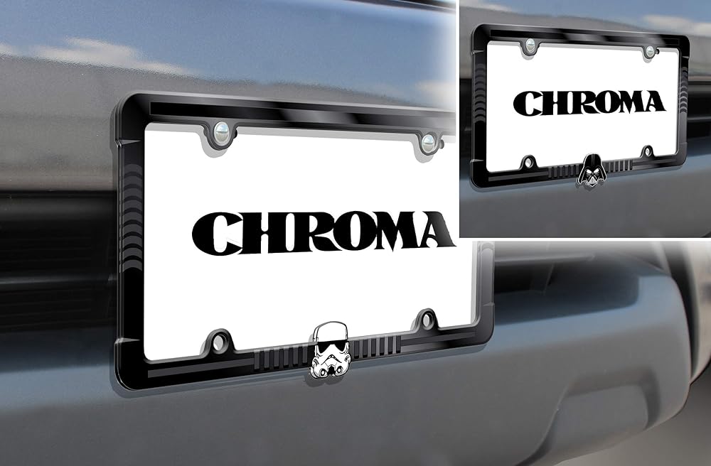 Star Wars Black Zinc Metal Tag Frame with interchangeable Darth Vader & Stortrooper Helmets, Disney License product, Easy to install.