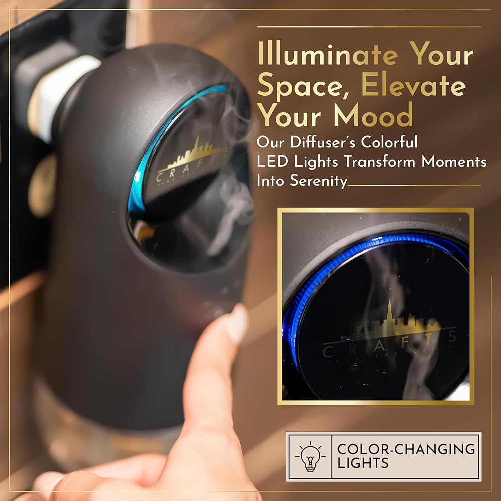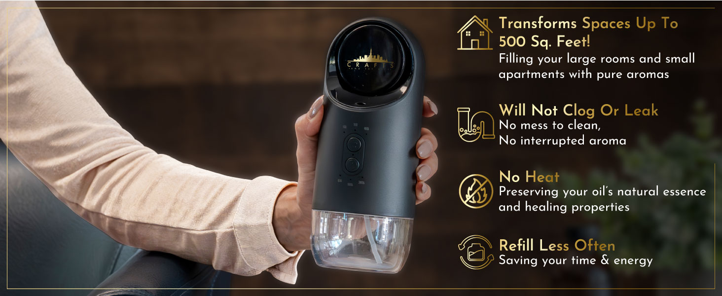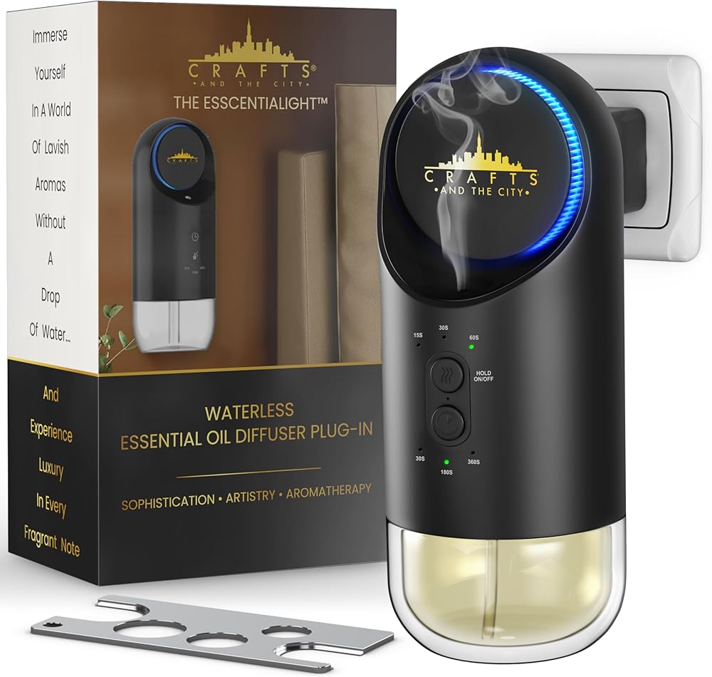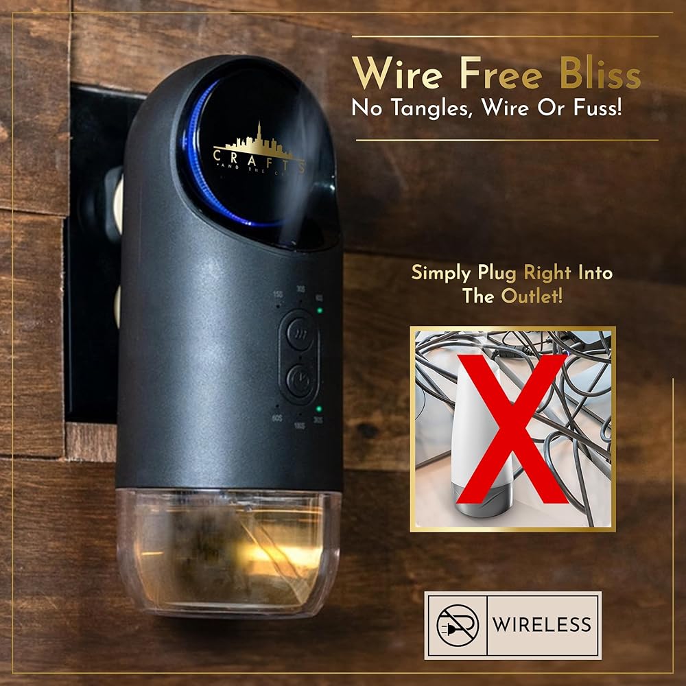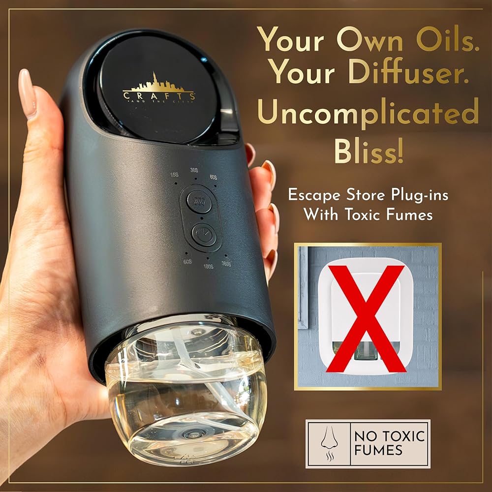 موزع روائح الزيوت العطرية بدون ماء في الحائط للمخرج من Crafts And The City - مجموعة روائح فاخرة لاسلكية لاسلكية للمنزل والمنزل والغرف والفندق والسفر - بخاخات رذاذ الهواء البارد الكهربائية الصغيرة