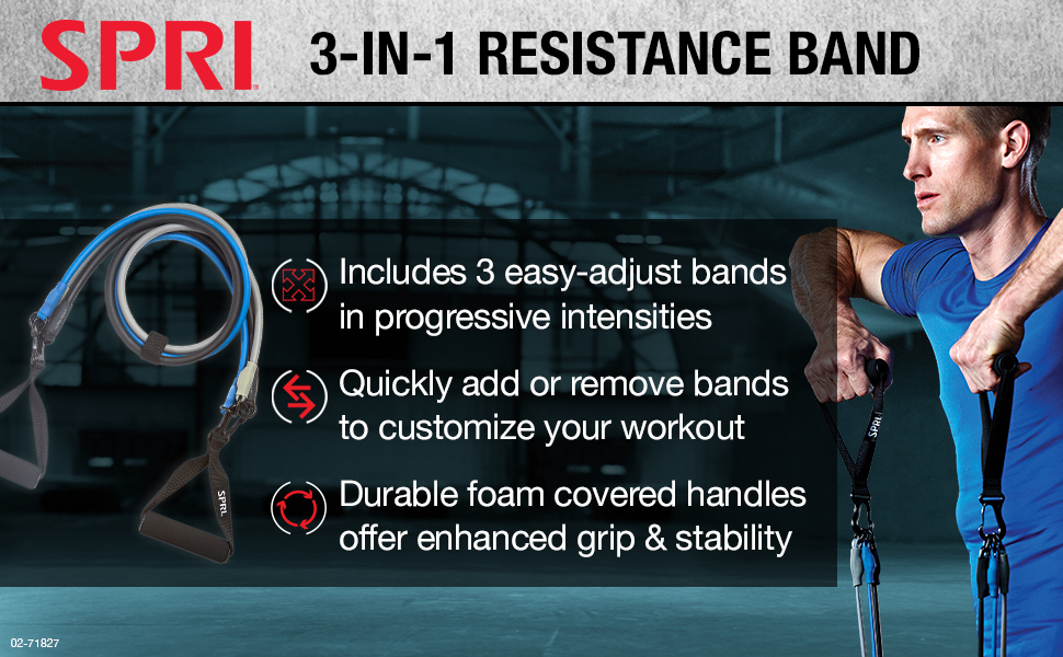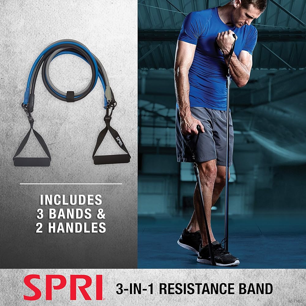 Get Three times the resistance with the SPRI Resistance Band Kit - includes 3 bands in progressive intensities that can be adjusted for your perfect fit. Quickly adjust the exercise band to your desired intensity by easily clipping on or off each resistance band. Includes durable foam covered handles - foam cushion offers greater stability and control while also lessening hand fatigue. downloadable fitness guide is included to help you get started with a few simple exercises.