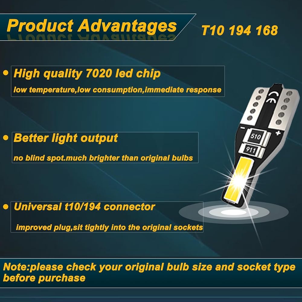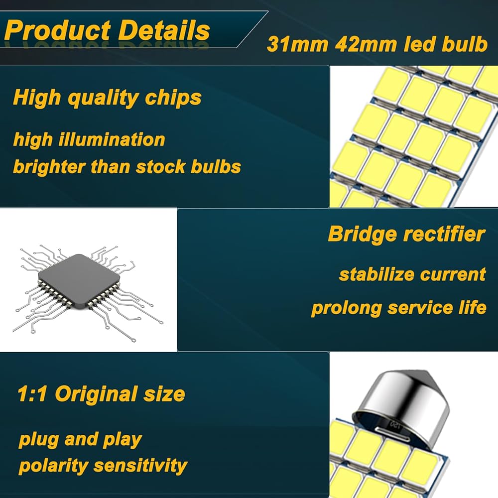 【تطبيقات واسعة】يمكن أن تكون مصابيح LED الداخلية هذه عبارة عن ضوء خريطة داخلي، أو ضوء السقف، أو ضوء لوحة الترخيص، أو ضوء ركن السيارة، أو ضوء الزاوية، أو الضوء الخلفي، أو ضوء التحديد الجانبي، أو ضوء الأدوات، أو ضوء البضائع، أو الضوء الخلفي، أو ضوء السلم، أو الضوء المساعد، إلخ. هذه المصابيح قد يناسب موضعًا آخر في سيارتك، اعتمادًا على طراز/طراز سيارتك/عامها.