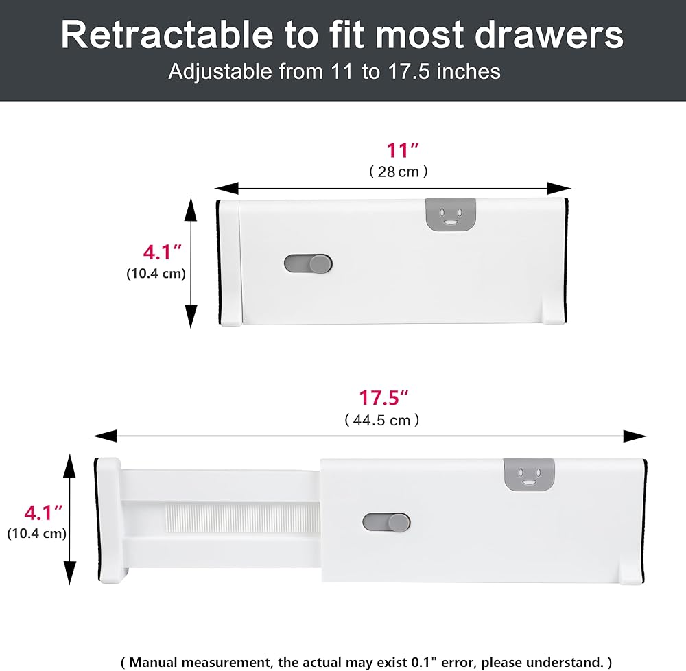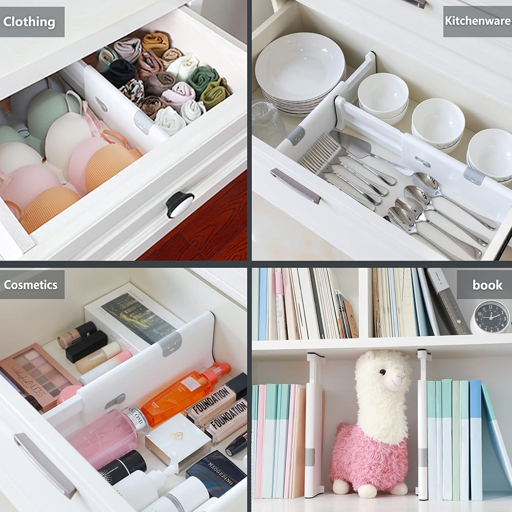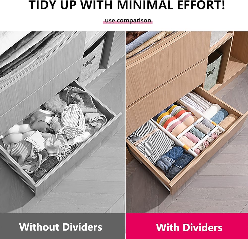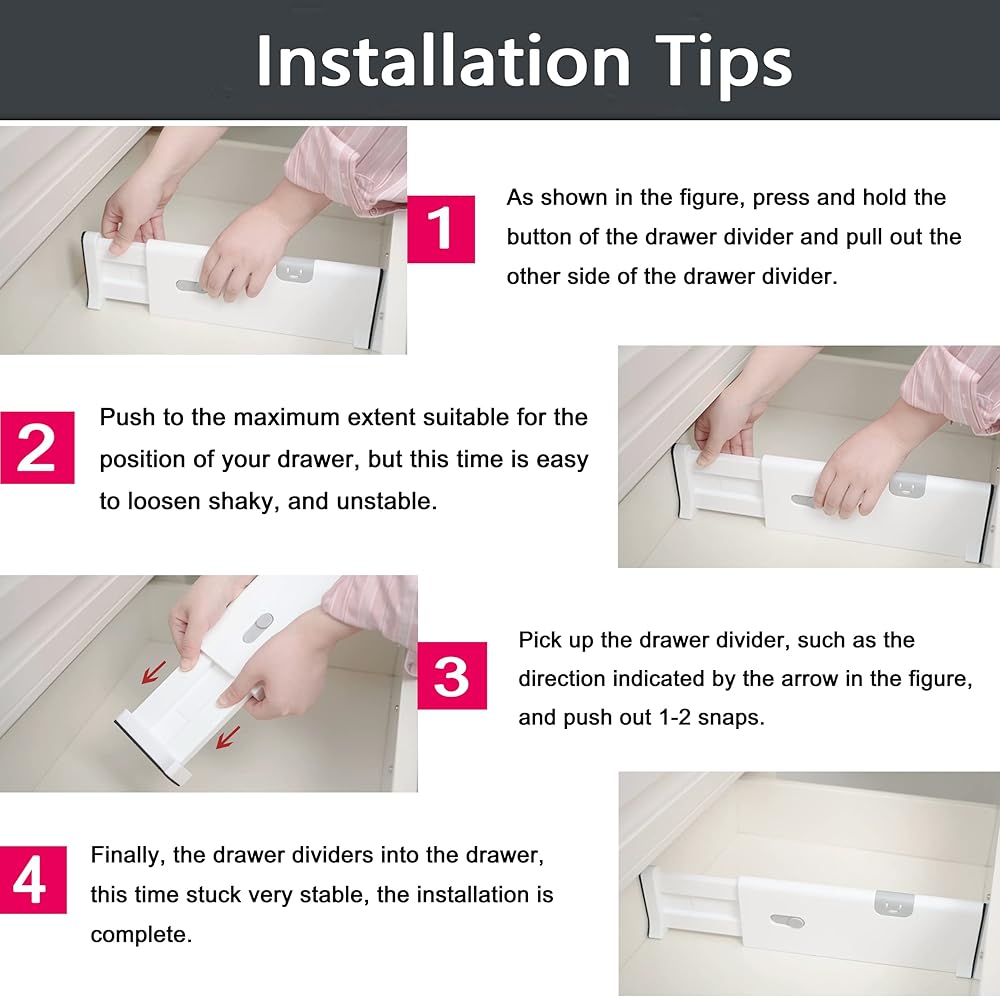 EASY INSTALLATION & REMOVAL---Each dresser drawer divider has a built-in spring to keep them in place and easy adjustment to meet your changing needs. If you are not entirely thrilled with your purchase for any reason, rest assured! contact us and we will solve your problem.