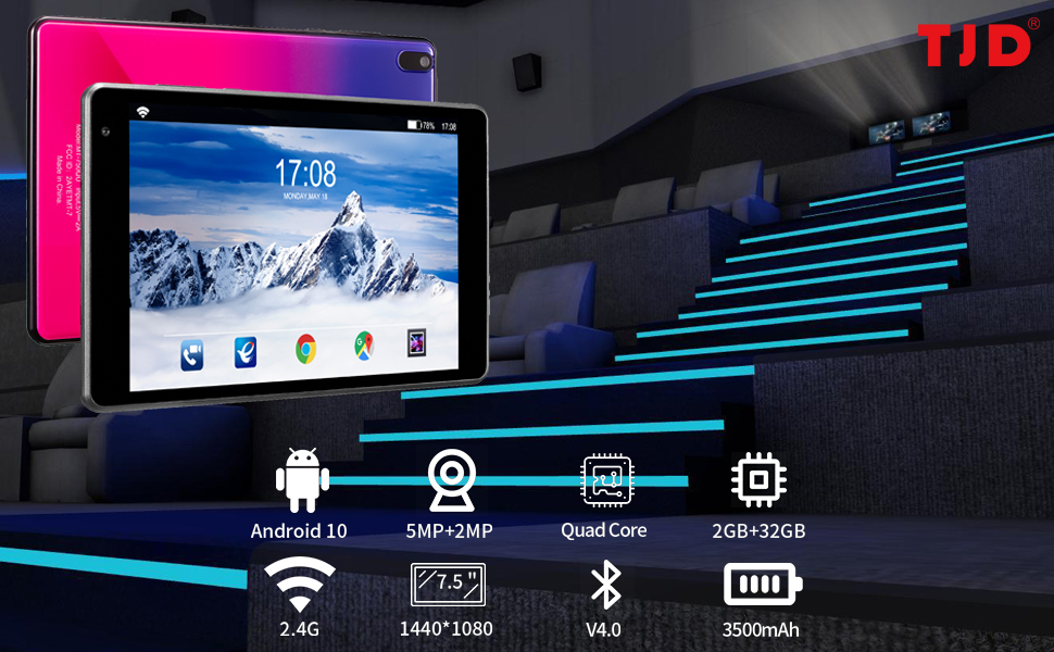 Introducing the TJD MT750QR 7.5-inch Android Tablet, a powerful and feature-packed device that is perfect for entertainment, productivity, and communication. With its stunning 1440*1080 pixel display, you can enjoy vivid and immersive visuals, whether you're watching movies, browsing the web, or playing games. The tablet is powered by a quad-core processor, providing fast and smooth performance for all your tasks. It also comes with 2GB of RAM and 64GB of ROM, providing ample storage space for your files, photos, and videos. The MT750QR supports dual-band WiFi, Bluetooth 4.2, GPS, 3G/4G, and OTG, allowing you to stay connected and access the internet from anywhere. The tablet also has a 64GB expandable memory, allowing you to add more storage if you need it. The MT750QR is equipped with a high-quality rear camera, allowing you to take stunning photos and videos. It also has a front-facing camera for video calls and selfies. The tablet runs on the latest Android 10 operating system, providing you with a user-friendly interface and access to a wide range of apps and games. Overall, the TJD MT750QR 7.5-inch Android Tablet is a powerful and versatile device that is perfect for anyone who wants to stay entertained, productive, and connected.