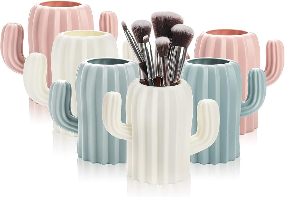 AVLA 6 عبوات من حوامل أقلام الرصاص البلاستيكية، كوب حامل أقلام الصبار، حاوية تخزين أقلام الرصاص المكتبية اللطيفة، حامل فرشاة مكياج مستحضرات التجميل، منظم أقلام المكتب للفتيات والنساء والفصول الدراسية والمنزل والمدرسة