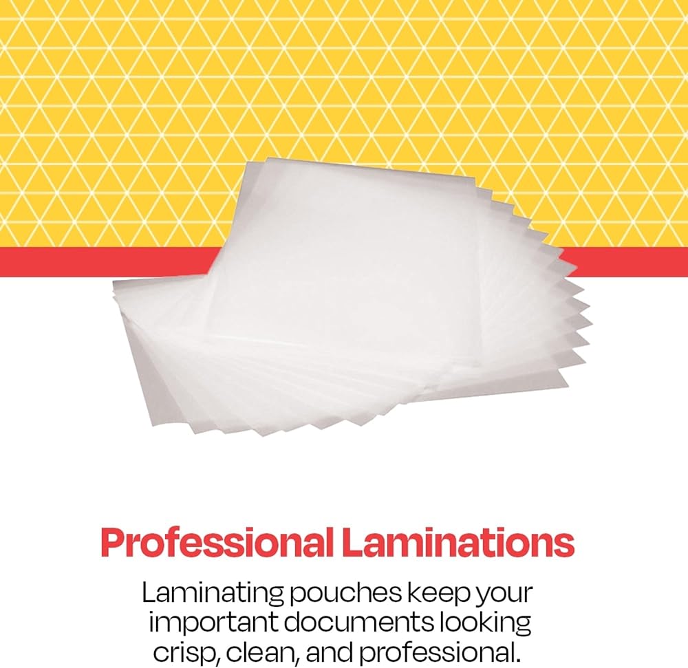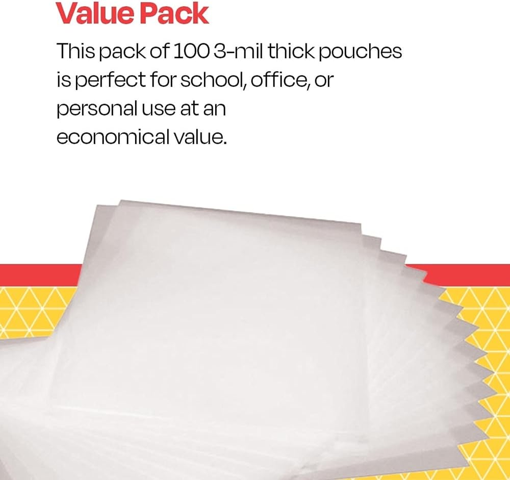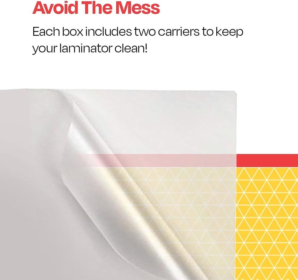 Pouches are two sheets of laminate attached on one side and can be used with a hot laminator. Each box includes two carriers to keep your laminator clean. Pouches come slightly larger to assure complete sealing. Ultra clear.