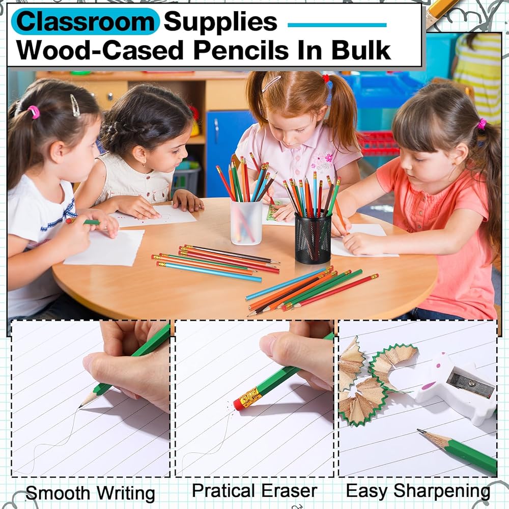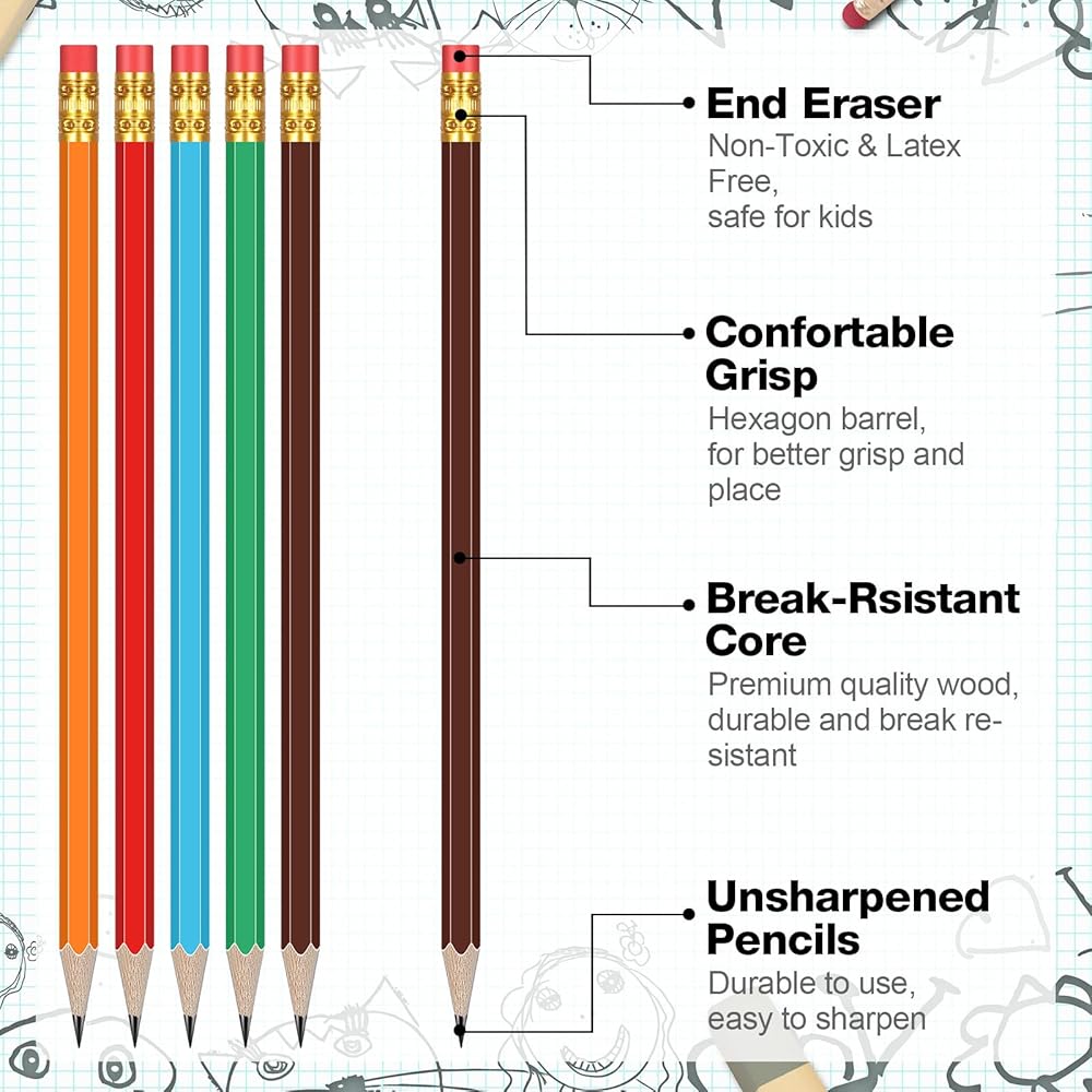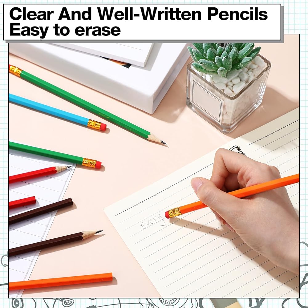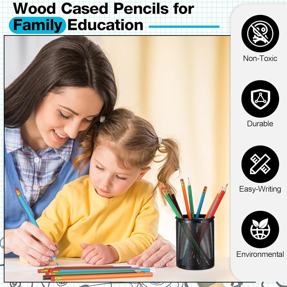 Made from quality graphite and wood materials, these 7.36 x 0.28 inches pencils are suitable for both children and adults. The 2 HB pencil is medium hard, providing smooth writing. They are versatile enough for daily writing, sketching, or crafting.