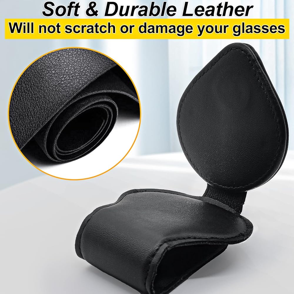 حامل نظارات شمسية لواقي السيارة، حامل نظارات شمسية من الجلد المغناطيسي للسيارة، حامل نظارات للسيارة، مشبك للنظارات لواقي الشمس للسيارة - أسود
