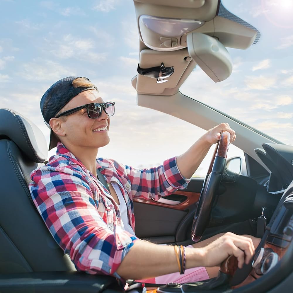 • 👓 نعمة كبيرة للسائقين: يمكن لحامل النظارات الشمسية التلقائي أن يبقي نظارتك في متناول اليد وفي متناول اليد، بالإضافة إلى تجنب الفوضى الفوضوية أو العدسات المخدوشة! يمكنك بسهولة وبسرعة العثور على النظارات أو النظارات الشمسية التي تحتاجها.