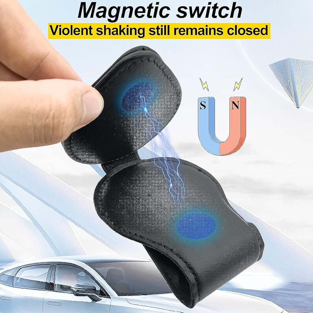 • 👓 يناسب معظم السيارات والنظارات: يبلغ حجم حامل النظارات الشمسية المغناطيسي للسيارة 3.54 × 1.77 × 0.8 بوصة فقط، وتصميم صغير الحجم لن يعيق رؤية القيادة الخاصة بك من أجل السلامة، والإبزيم الموجود في الجزء الخلفي من إطار النظارات الشمسية للسيارة يحمل حوالي 0.8 بوصة من المساحة ويمكن تركيبها على معظم أقنعة الشمس في السيارة.