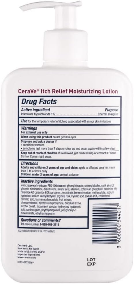 MOISURIZES DRY SKIN: CeraVe Itch Relief Moisturizing Lotion contains three essential ceramides that helps repair and restore the skin's barrier, so your skin can stay healthy.