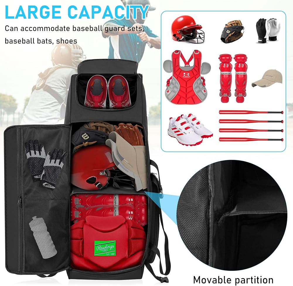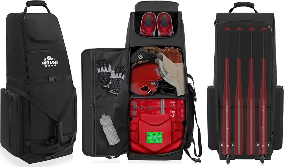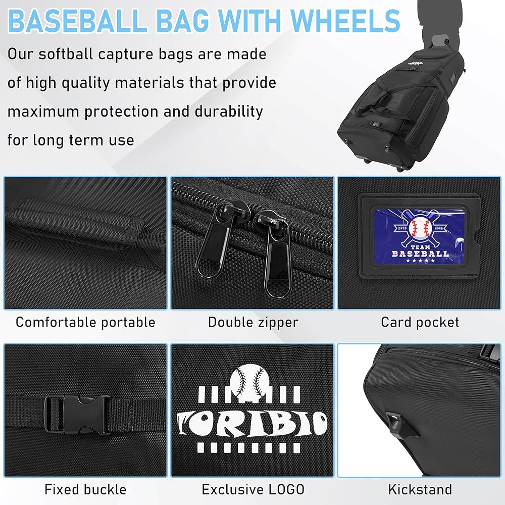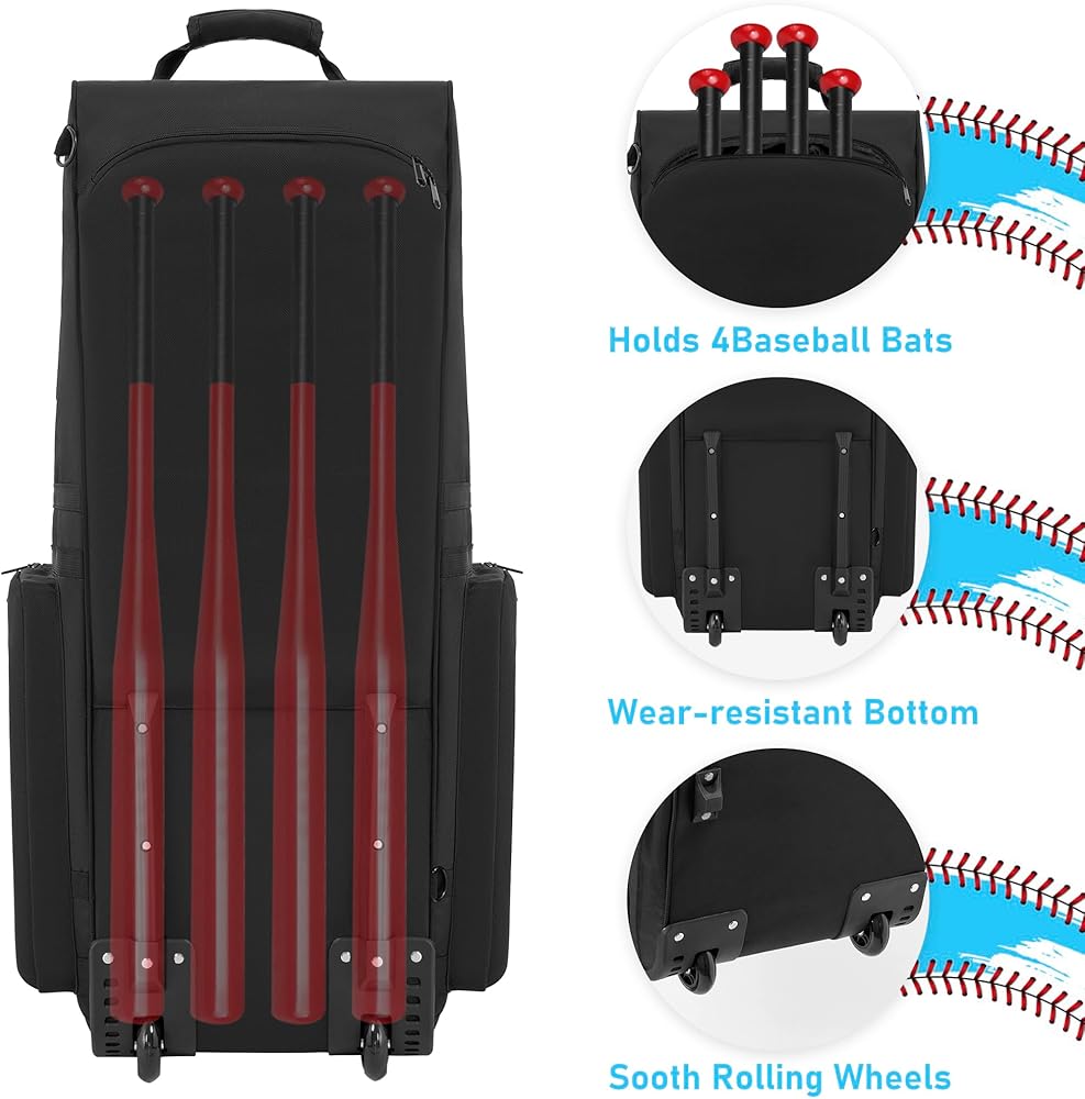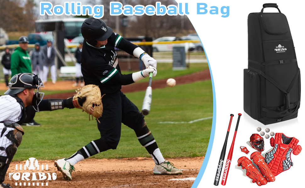 حقيبة البيسبول المتدحرجة من توريبيو، حقائب معدات البيسبول والكرة اللينة ذات العجلات، حقيبة مضرب البيسبول الرياضية للبالغين، تحمل الخفاش والخوذة والمزيد