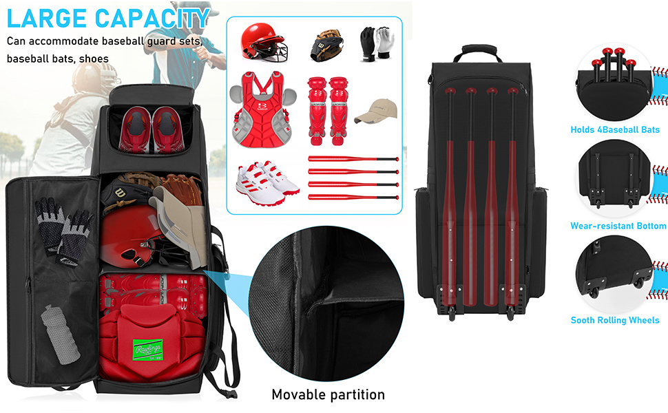 • 🏏【سهلة الحمل】: مقابض مبطنة وتصميم دوار عالي التحمل يسمح لك بالحصول على تجربة حمل مريحة عند الخروج. تتيح لك الفوز بكل لعبة بسهولة وتخزين جميع معدات البيسبول الخاصة بك بسهولة.