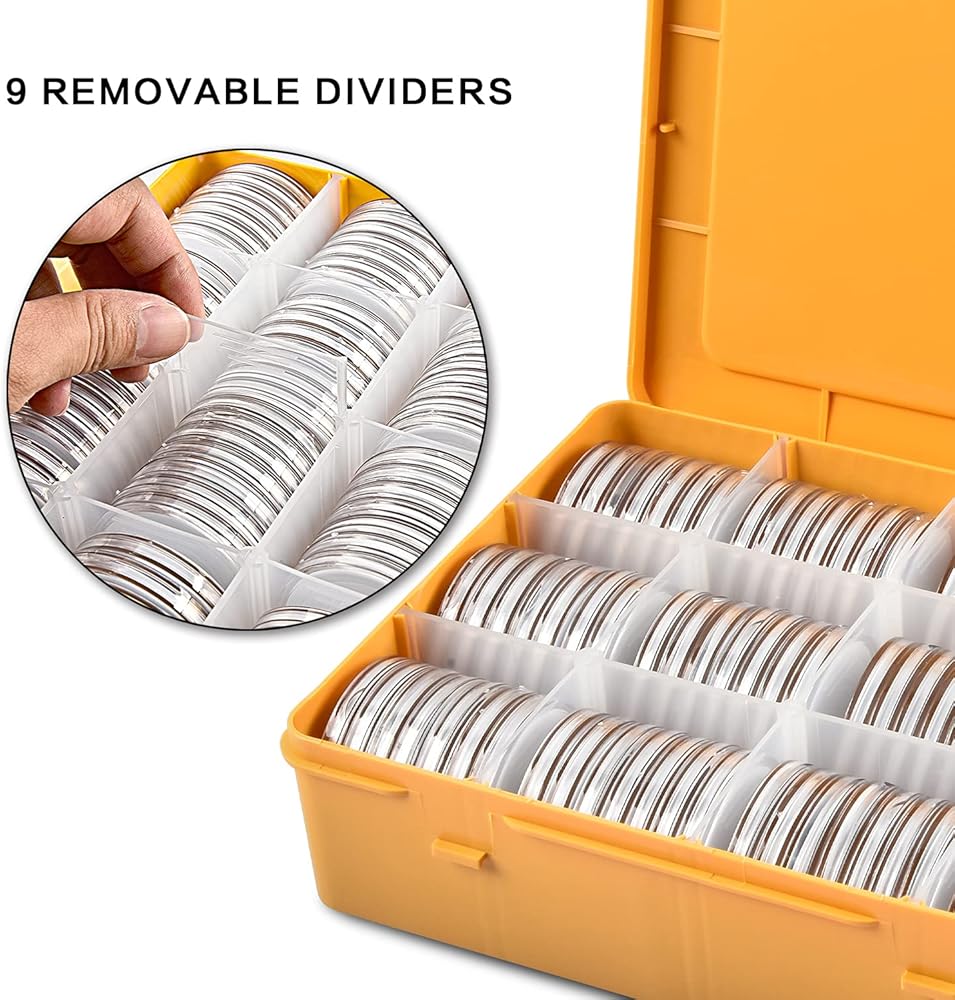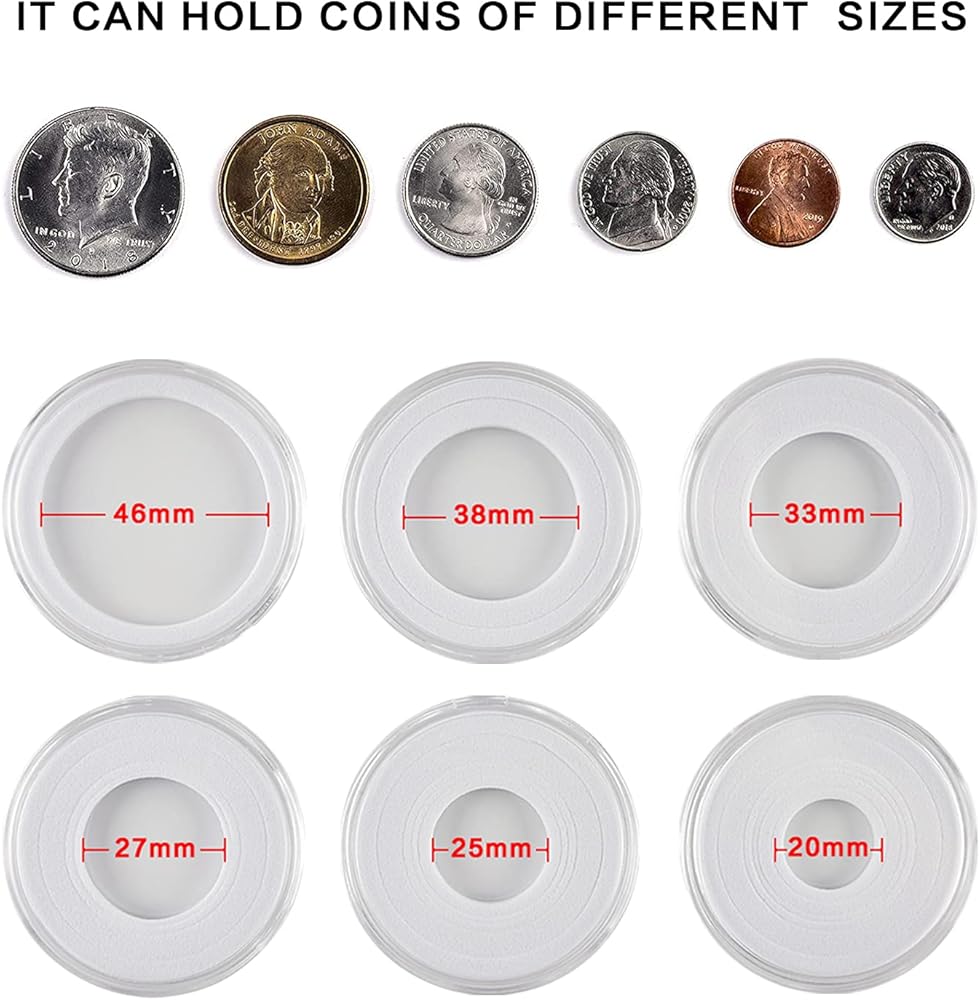 كبسولات عملات معدنية سهلة الاستخدام لجميع العملات المعدنية: منظم عملات بلاستيكي داخلي مقاس 46 * 3 مم مع 6 أحجام من الحشيات الإسفنجية يسمح لك بتخزين جميع العملات المعدنية القابلة للتحصيل، مثل 2020 - عملات النسر الفضي الأمريكي، عملات السبائك، عملات التحدي، الكوارت الأمريكية أو الدولارات، إلخ. يمكن إدخال أو إخراج 9 قطع من الأقسام القابلة للإزالة من صندوق تجميع العملات المعدنية بسهولة. يمكنك إدارة مساحة العملات المعدنية الداخلية بشكل مستقل لتلبية احتياجات مجموعات العملات المختلفة في الحياة.