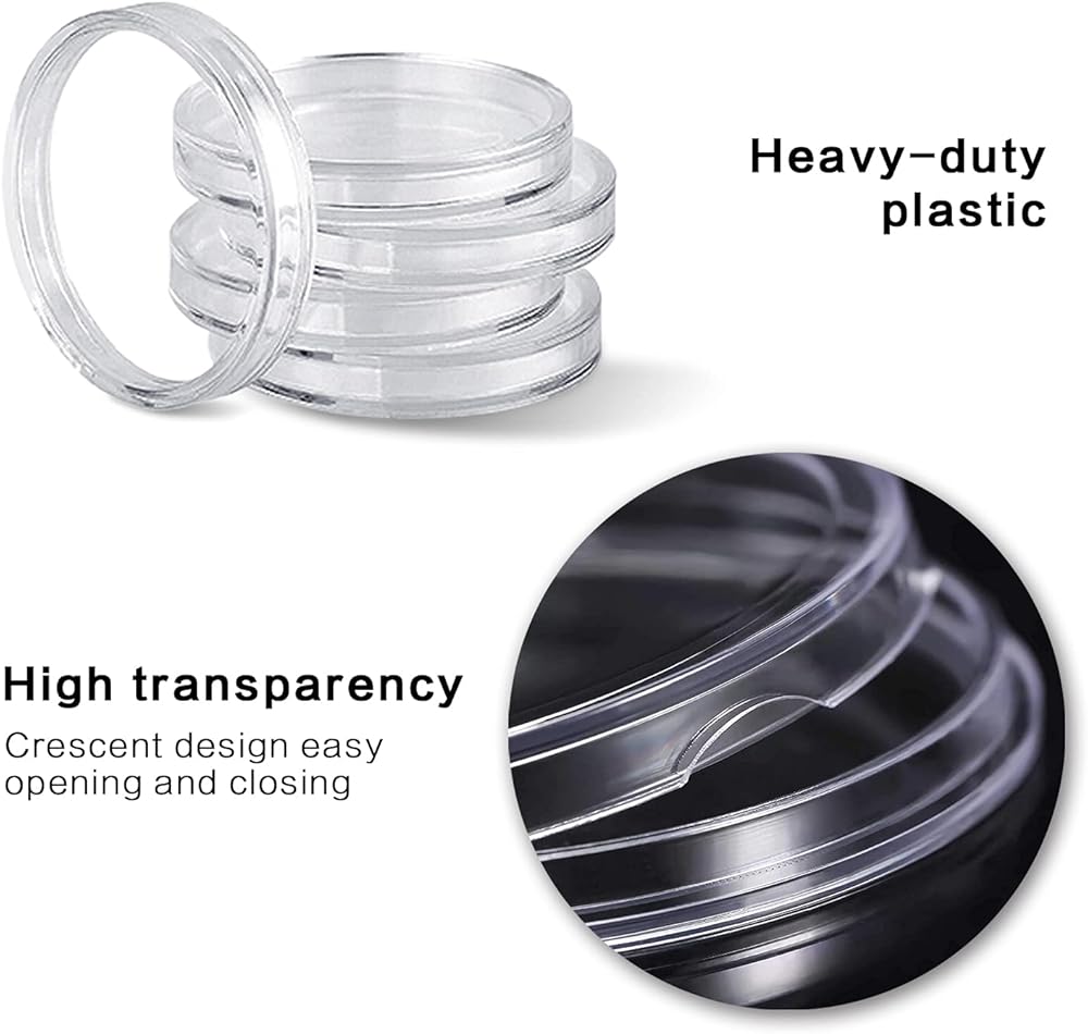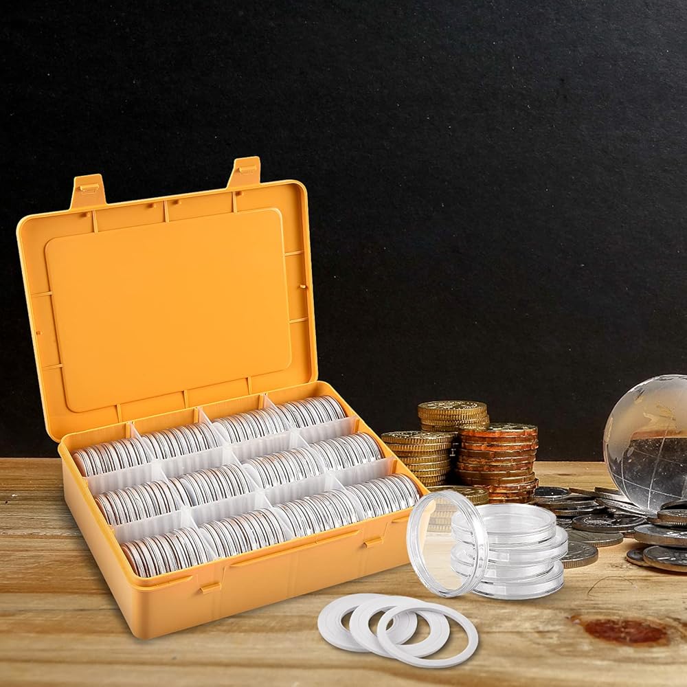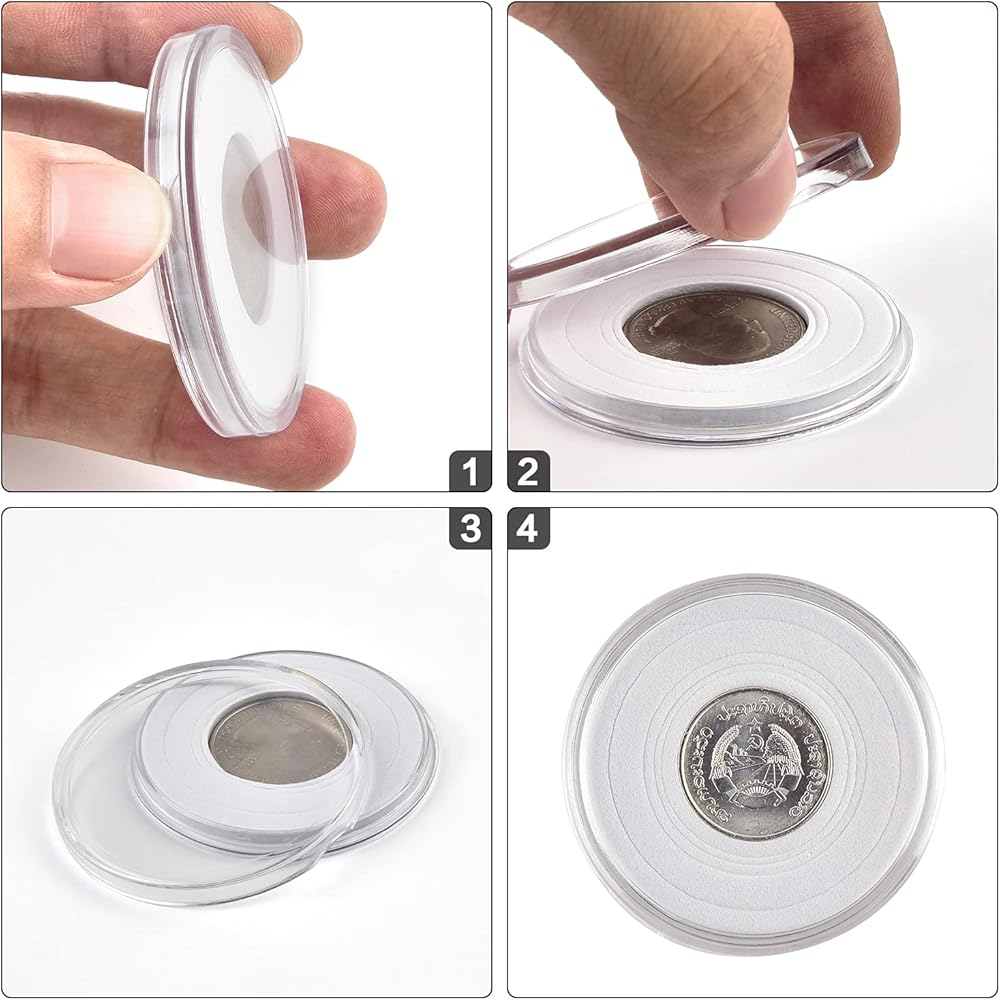 واقي للعملات المعدنية بتصميم فريد: تصميم هلالي لصندوق كبسولات العملات المعدنية مريح في الفتح والإغلاق. إن تصميم المزلاج القوي والمستقر لمستلزمات جامعي العملات المعدنية جنبًا إلى جنب مع الحاجز الداخلي الصغير يجعلها مغلقة بإحكام وسهلة الاستخدام. يمكن تخزين العملات المعدنية الداخلية بأمان في مكان واحد، ويسهل العثور عليها ولن تفقدها. التصميم الدائم لأكمام العملات المعدنية يحافظ على عملات الدولار الفضية مرتبة ومنظمة.