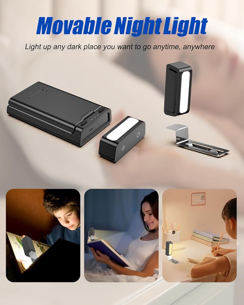 【𝐌𝐚𝐠𝐧𝐞𝐭𝐢𝐜 𝐑𝐞𝐚𝐝𝐢𝐧𝐠 𝐁𝐨𝐨𝐤 𝐋𝐢𝐠𝐡𝐭】ضوء كتاب مغناطيسي مناسب للقراءة في السرير والعمل والسفر والتخييم وما إلى ذلك. توفير 6 000K-6500K ضوء درجة حرارة اللون و3 مستويات لتعديل السطوع (أبيض/طبيعي/دافئ). يمكن للقراء الاستمتاع بالقراءة ليلاً دون إزعاج الآخرين. يتيح مشبك ضوء الكتاب سهولة توصيله بالكتب والأجهزة اللوحية وKindle والمزيد.