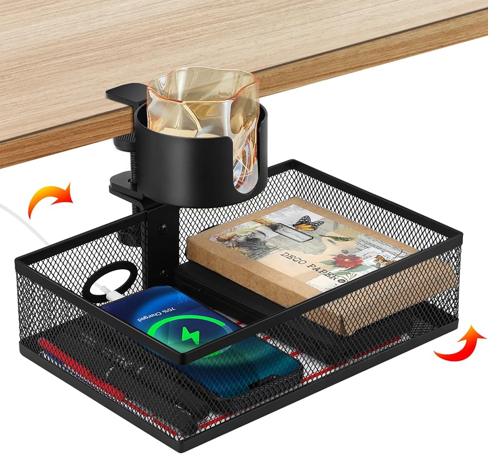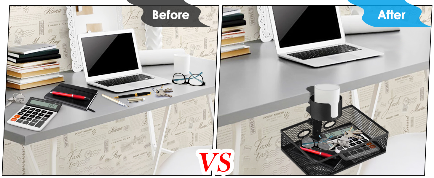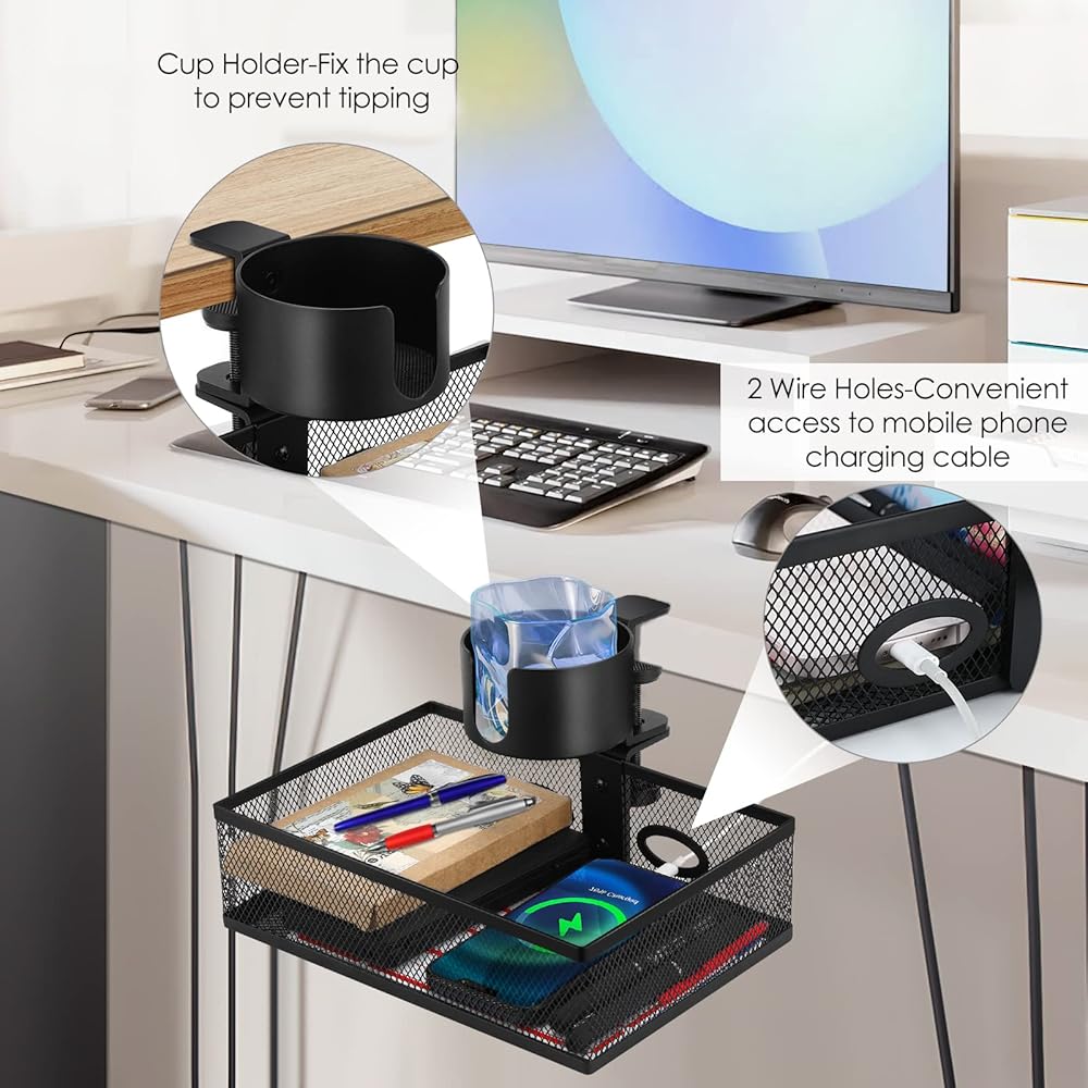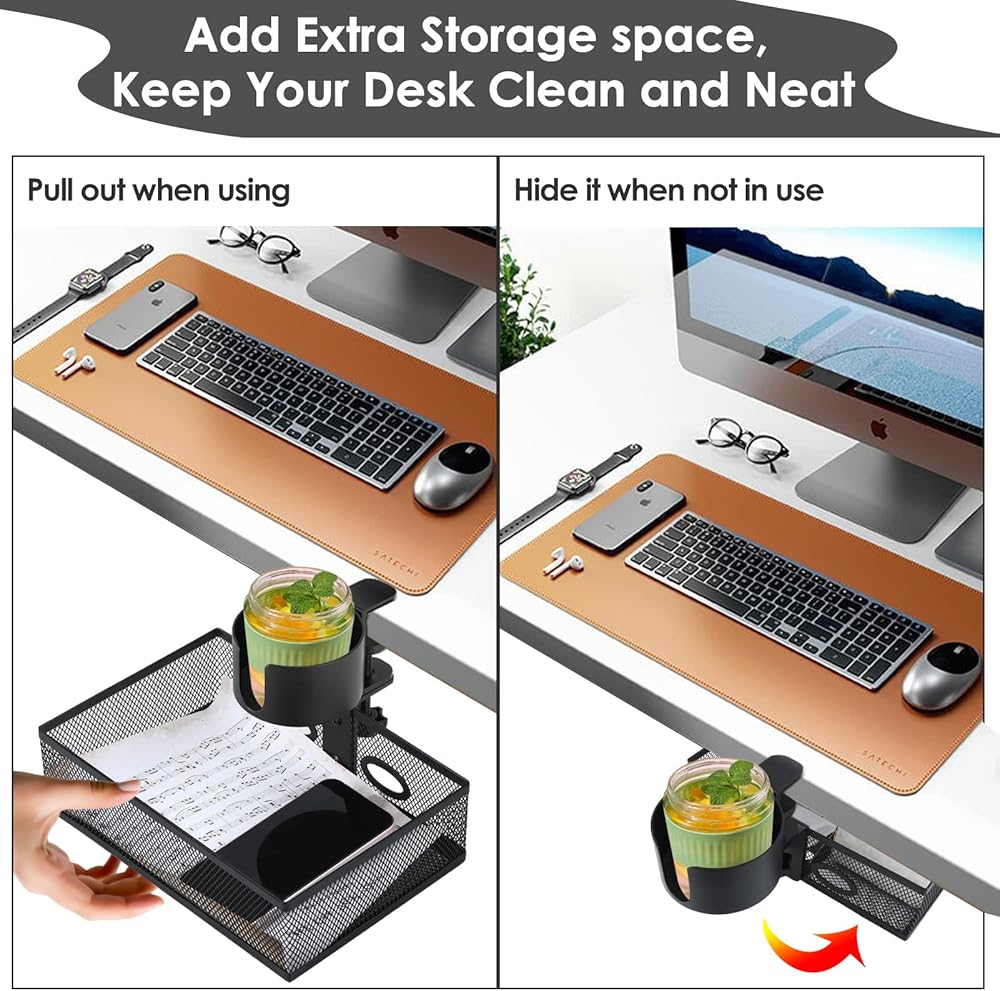 【درج دوار 360 درجة تحت المكتب مع حامل أكواب】مجموعة صندوق تخزين سطح المكتب لدينا تجمع بشكل مثالي بين حامل الأكواب المكتبي والتخزين أسفل الطاولة، مما لا يزيد فقط من مساحة تخزين المكتب، ولكن أيضًا يثبت الكوب على حافة المكتب منع المشروبات من الرش. بالإضافة إلى ذلك، تم تصميم صينية التخزين الموجودة أسفل المكتب بدوران 360 درجة، والتي يمكن تدويرها وإخفائها تحت الطاولة عندما لا تكون قيد الاستخدام، مما يوفر مساحة الاستخدام بشكل كبير.
