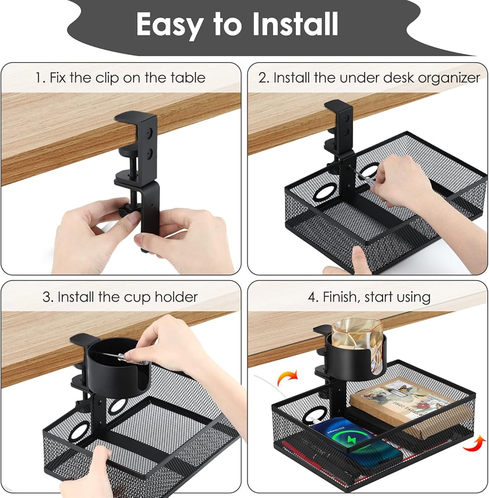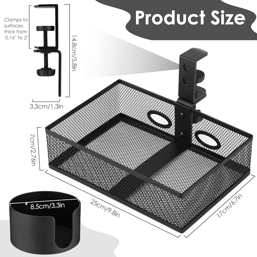 【جودة عالية - قوية ومتينة】مصنوعة من مواد معدنية عالية الجودة، سلة التخزين الموجودة تحت الطاولة مع حامل أكواب المكتب قوية ومتينة، ومقاومة للصدأ، ومقاومة للتآكل، ويمكن أن تخدمك لفترة طويلة. مع الصنعة الدقيقة والحواف الناعمة والمستديرة، لا داعي للقلق بشأن التعرض للخدش. التصميم الأسود الكلاسيكي يمكن أن يتوافق مع أي نمط، مجموعة منظم المكتب الخاصة بنا هي قطعة فنية مكتبية يجب اقتناؤها لتعزيز بيئة مكتبك وجودته.