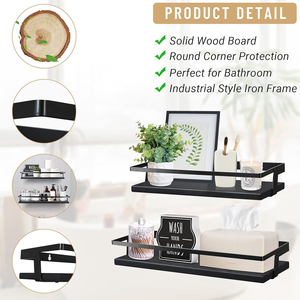 【اختيار مثالي للهدايا】- ستضيف الأرفف العائمة السوداء للحمام نمطًا قديمًا إلى غرفة نومك أو حمامك أو غرفة المعيشة أو المكتب أو أكثر. في حالة وجود أي مشكلة أو عدم رضاك، يرجى إخبارنا دون تردد، وسنبذل قصارى جهدنا لحل مشكلتك.