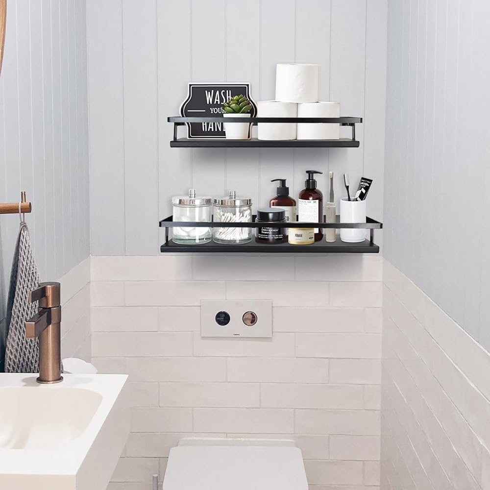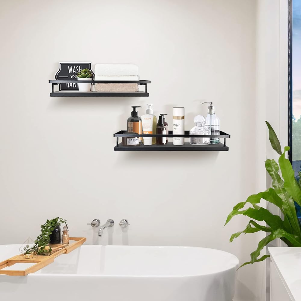【أرفف تخزين عملية】- في المطبخ، يمكن استخدام رف الحائط الأسود هذا لوضع زجاجات التوابل. في الحمام، ضع مستحضرات التجميل على أرفف التخزين، مثل الشامبو والبلسم وجل الاستحمام، إلخ. مثالية أيضًا لغرفة النوم وغرفة المعيشة والمكتب وما إلى ذلك.
