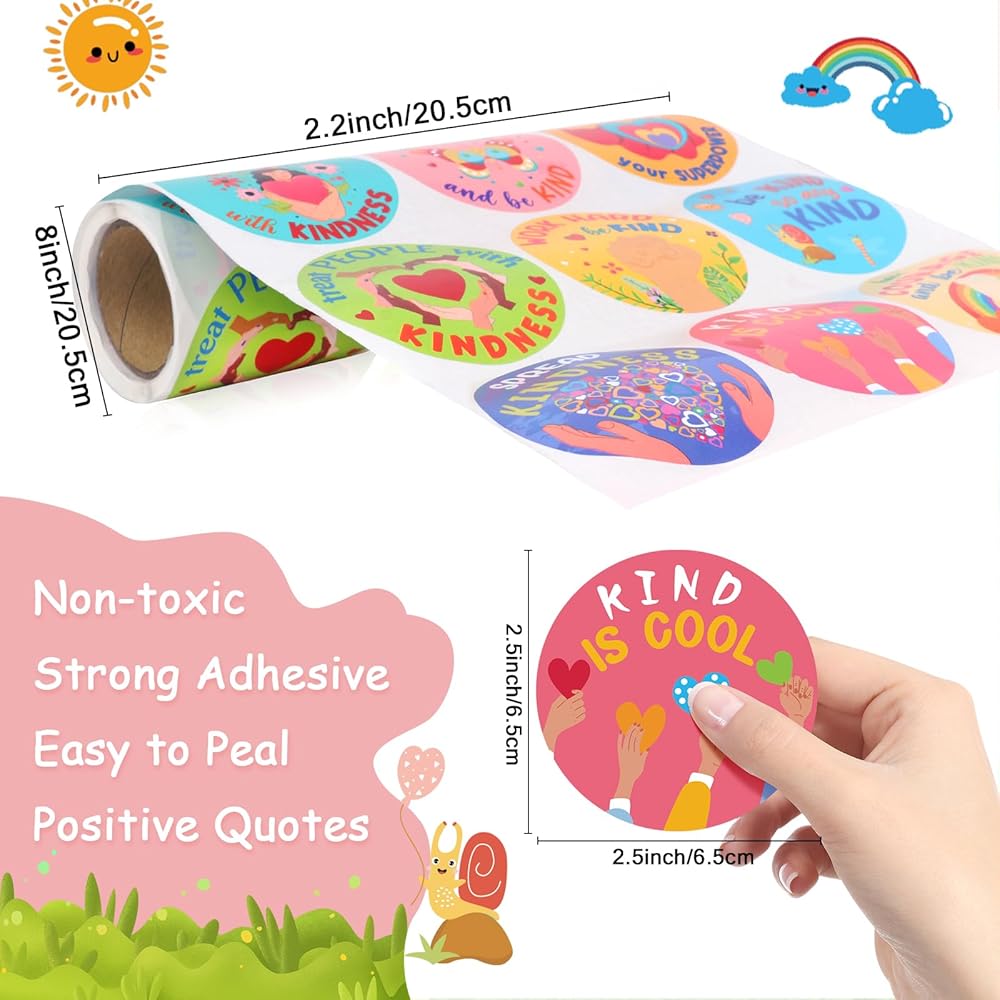 Package Includes: You will get a roll of 300 pieces kindness stickers in 9 designs, size is 2.6 x 2.6 inches. These stickers including various kindness words and pattern, suitable as a prompt for daily encouragement.