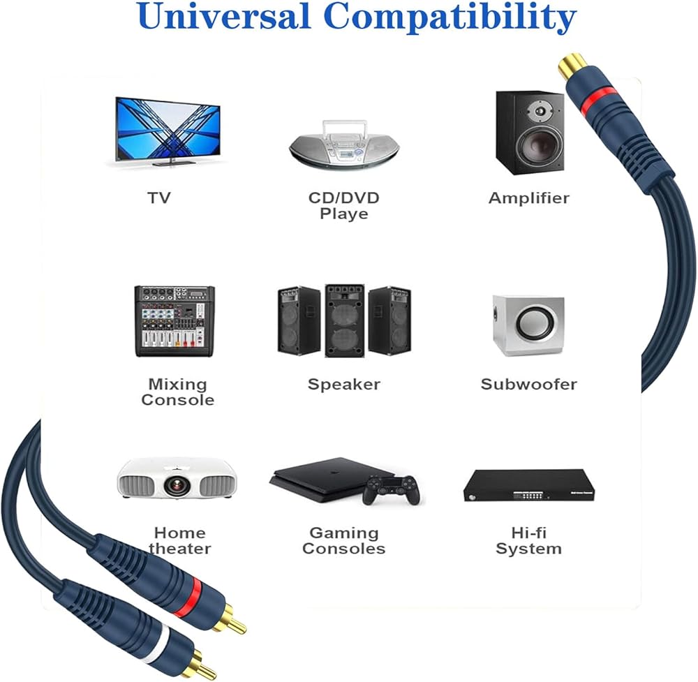 🔥توافق عالمي: يدعم مقسم rca الخاص بنا جميع الأجهزة التي تحتوي على اتصال صوت rca، مثل xbox 360، وps3، وwii، وHDTV، وأجهزة استقبال الصوت A/V أو أي جهاز مزود بمقبس L/R.