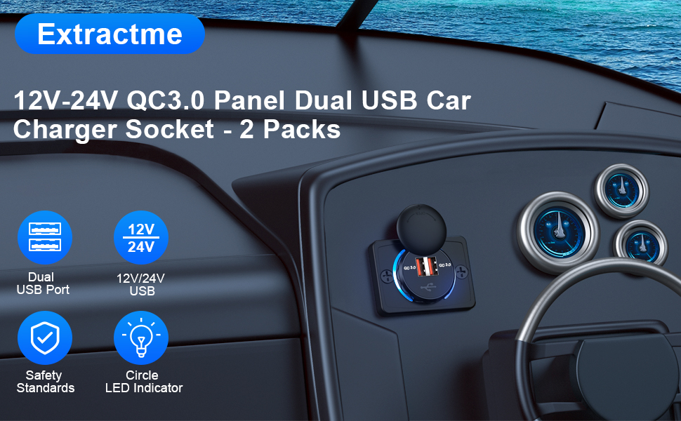 EXTRACTME Quick Charge 3.0 12V USB Outlet، RV USB Outlet Panel Dual USB Car Charger مقبس الطاقة مع غطاء، 36W Dual Port 12V-24V شاحن سيارة سريع للسيارة، الحافلة، ATV، RV، قارب، شاحنة - 2 حزم