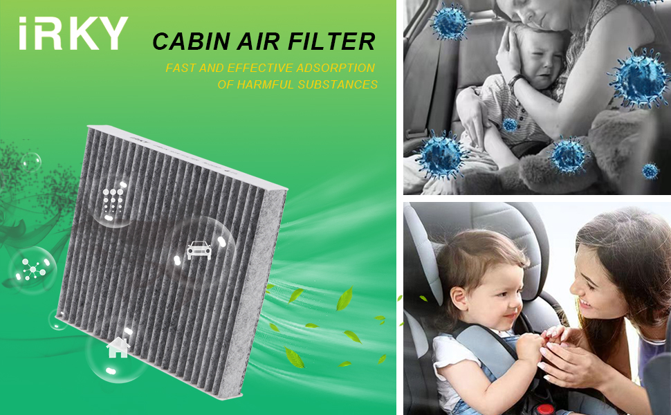 التركيب: فلاتر استبدال السيارات iRKY سهلة التركيب، كما أن سهم تدفق الهواء الجانبي سهل الفهم، ويمكن إكماله في غضون 10 دقائق. ننصحك باستبدال فلتر السيارة سنويًا أو كل 12000 ميل.