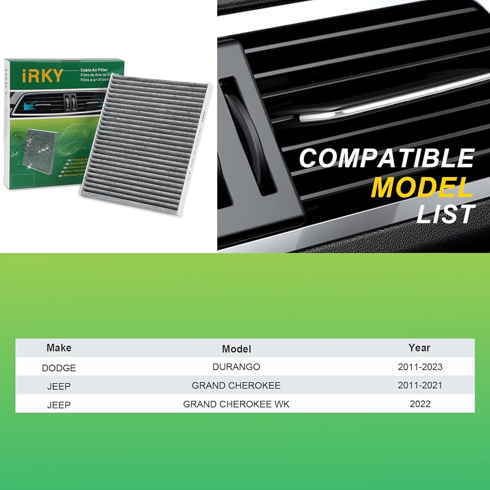 الملاءمة: فلتر هواء المقصورة متوافق مع دودج دورانجو 2011-2023؛ متوافق مع جيب جراند شيروكي 2011-2021. متوافق مع جيب جراند شيروكي WK 2022. يرجى التأكد مما إذا كان الطراز الخاص بك مناسبًا قبل الشراء، شكرًا لك!