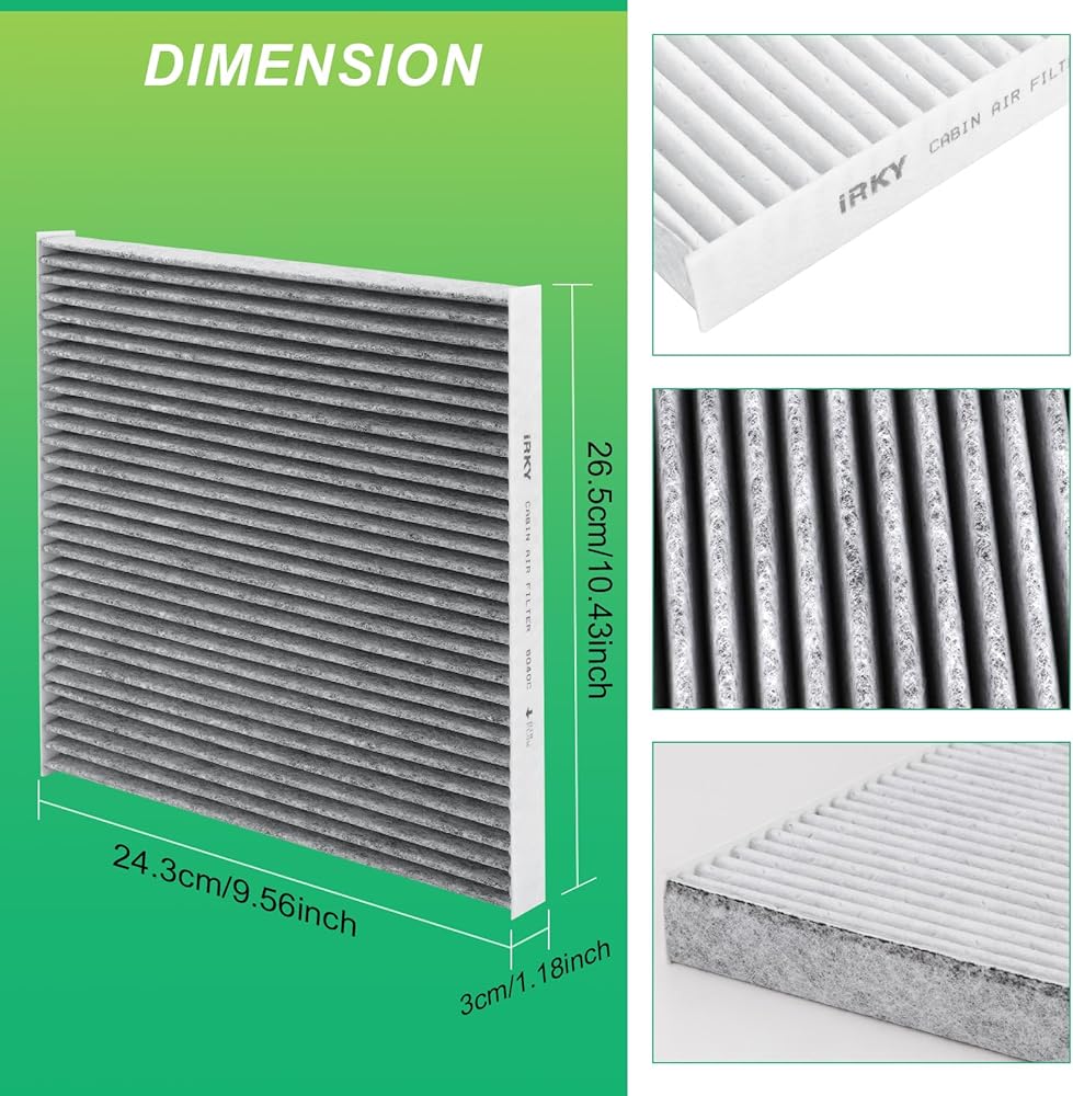 مادة صحية: مصنوعة من الكربون المنشط عالي الجودة بدون مزيل للروائح الكيميائية. توفر لك فلاتر كابينة الهواء هواءً نظيفًا حقًا للحفاظ على صحة أنفاسك.