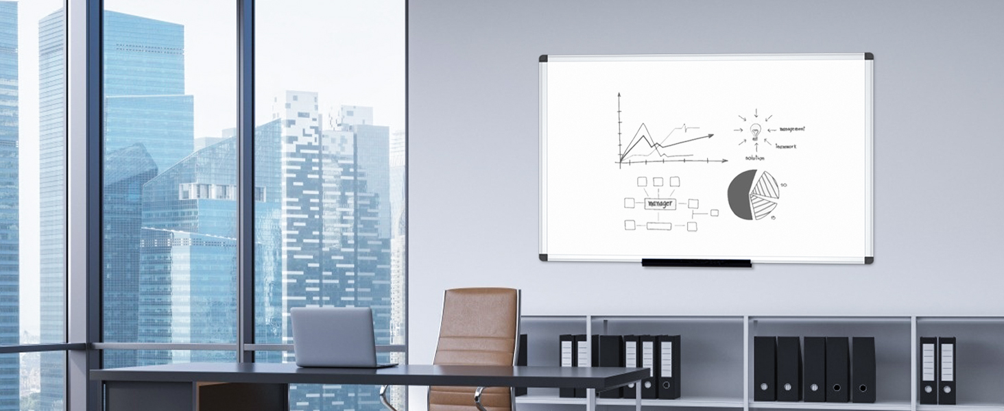 - سطح كتابة أملس ومتين وغير مغناطيسي، يمكن مسحه بسهولة باستخدام جميع أقلام المسح الجاف