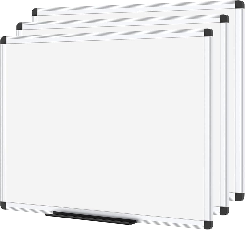 لوح المسح الجاف من VIZ-PRO، ميلامين، 24 × 18 بوصة، 3 عبوات، إطار من الألومنيوم الفضي