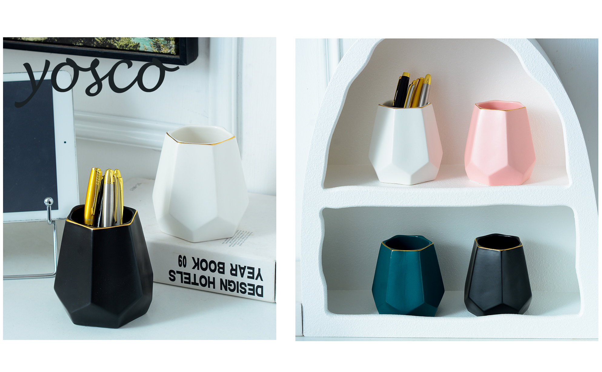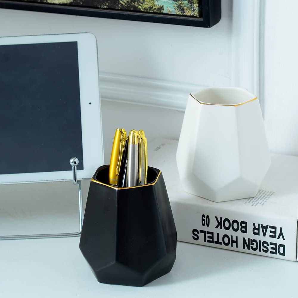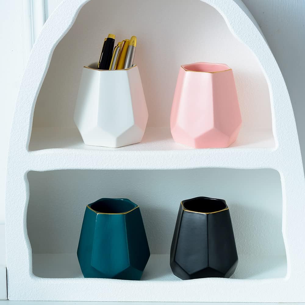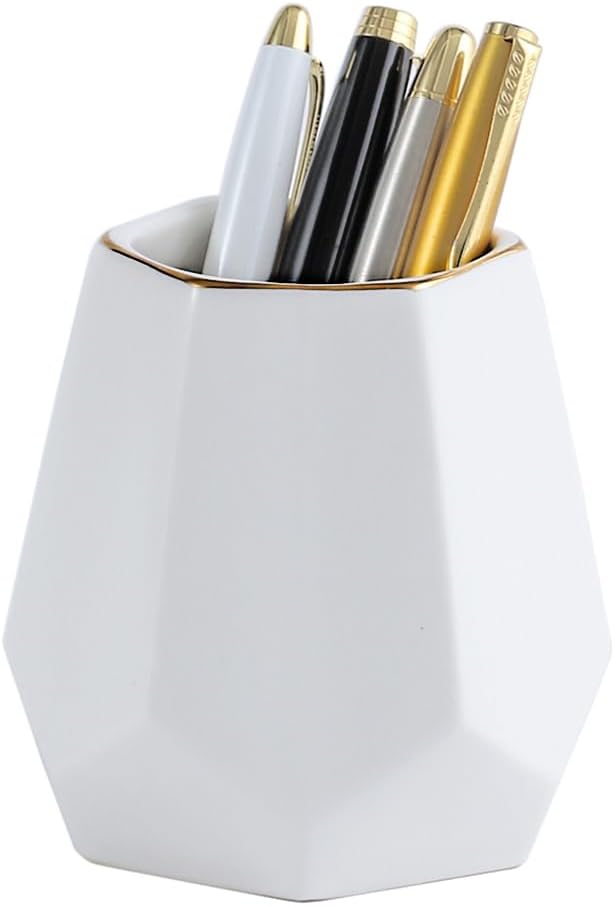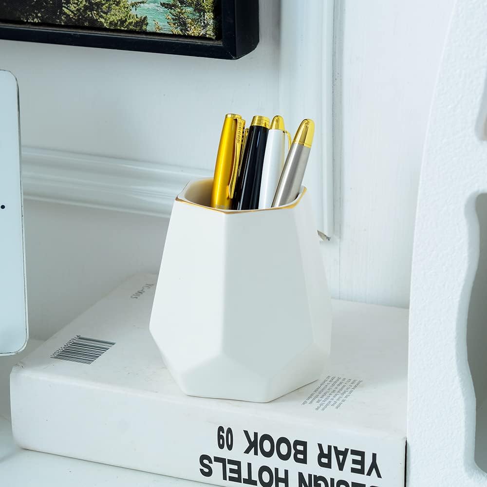 حامل أقلام سيراميك للمكتب، حامل أقلام رصاص على شكل هندسي لطيف، منظم مكتب لديكور المكتب، حامل فرشاة مكياج (أبيض)