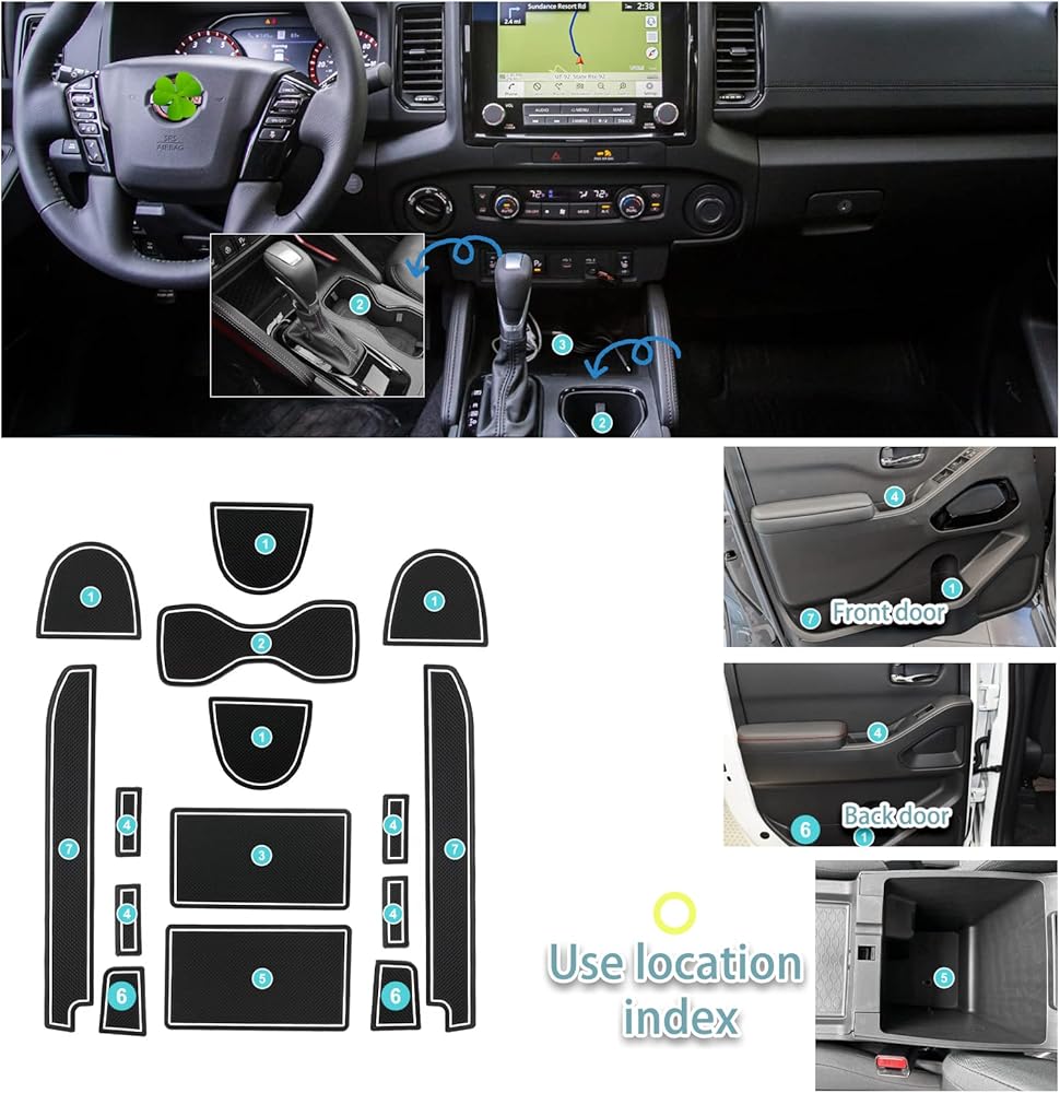 【Fit for 2022 2023 Nissan Frontier】For 2023 2024 Nissan Frontier door slot mats fits for 2022 2023 2024 Nissan Frontier S, SV, Midnight Edition, Pro-X, Pro-4X, SL, 15 Pcs/Set, produced according to the original car model makes each pad perfectly fit 2023 2024 Nissan Frontier Accessories