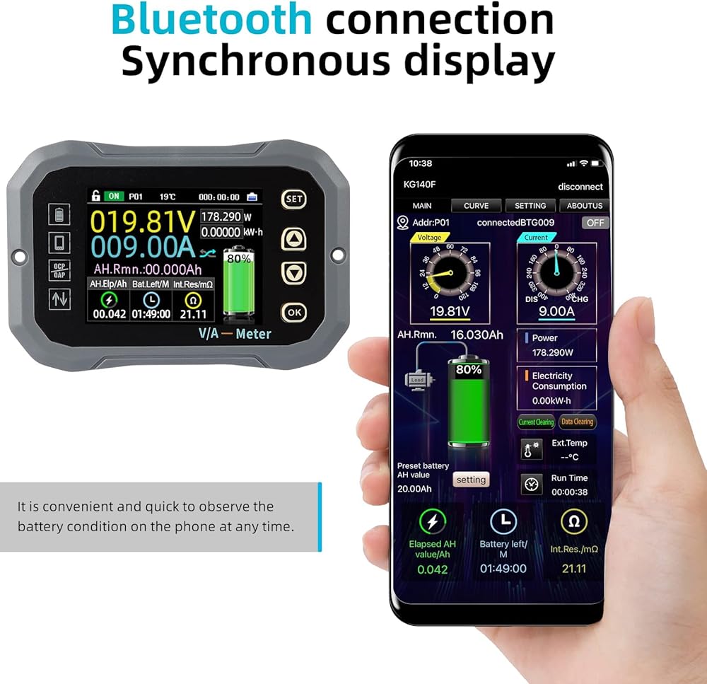 [شاشة عرض LED تساوي 2.4 بوصة] سوف تقوم شاشة بطارية البلوتوث 12 فولت بتتبع المعلومات حول التيار والجهد والتيار والطاقة المستهلكة وسعة البطارية، وتعرض على شاشة LCD حيث يمكن رؤيتها في لمحة، وتعرف على الحالة في الوقت الفعلي وتأخذها الإجراءات على الفور عندما يحدث خطأ ما.