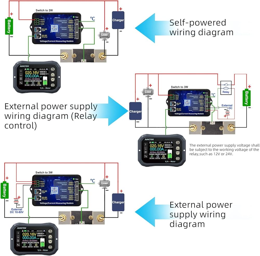 [يتم تطبيقه على نطاق واسع] يدعم التحويل كلاً من الأسلاك ذاتية الطاقة وأسلاك إمداد الطاقة الخارجية (تأتي مع كابل بطول 5 أمتار)، لذلك فهو مفيد جدًا إذا كنت بحاجة إلى نظام مراقبة البطارية في سيارتك RV في الصيف، ثم أعد استخدامه من أجل شيء مثل كوخ الصيد على الجليد في الشتاء.