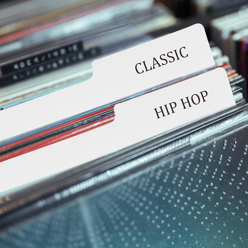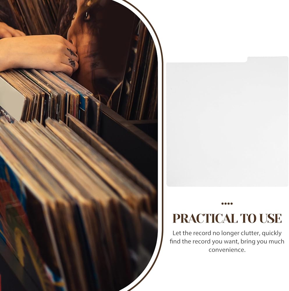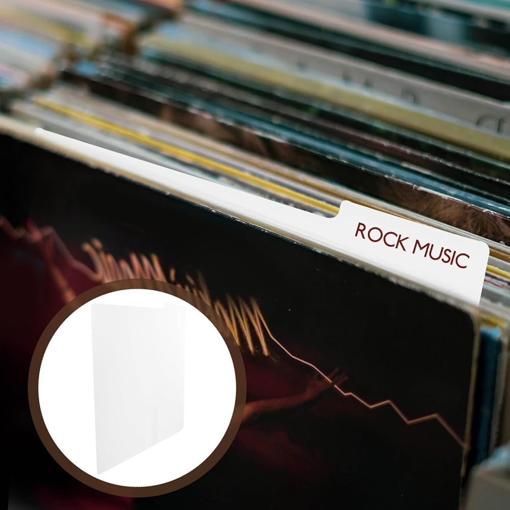 This is a white plastic record dividers, These vinyl record dividers are made of sturdy plastic, which is durable and not easy to break. 12.5 x 13.49 inches, large enough to write down the category and name. The white color makes it easy to read. These record dividers can be applied for vinyl records, cds, dvds, and other media. They can help you organize your collection easily and keep them neat and tidy.