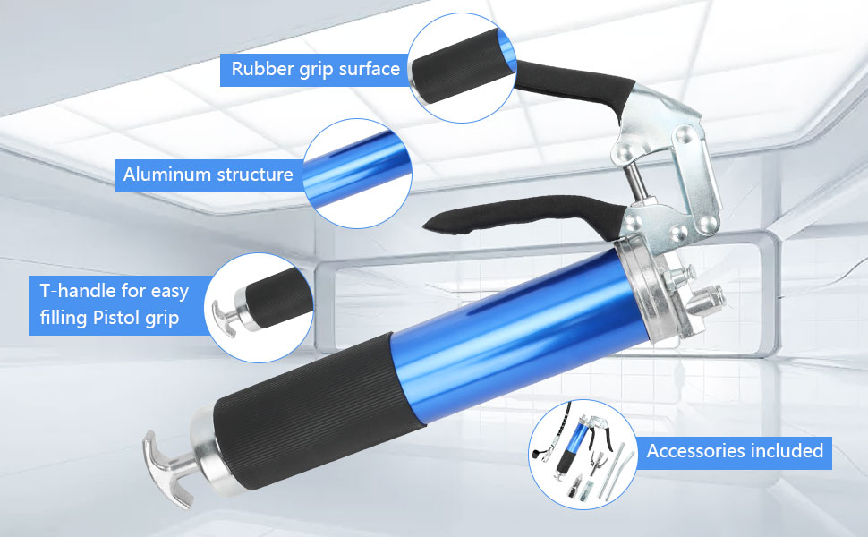 - 6000-7000 رطل لكل بوصة مربعة: مضمونة برأس مصبوب من الحديد وختم معزز. تشحيم أكثر أمانًا وسلاسة.