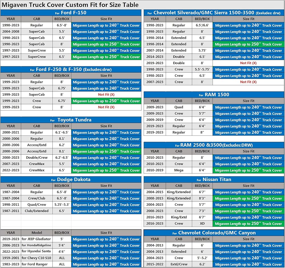 غطاء شاحنة مقاوم للماء في جميع الأحوال الجوية، أغطية شاحنة Migaven مقاومة للماء للأشعة فوق البنفسجية والرياح لسيارة Ford F150 Silverado 1500 Ram 1500 Toyota Tundra، بطول يصل إلى 240 بوصة