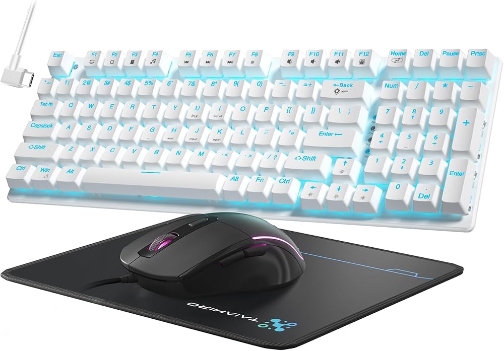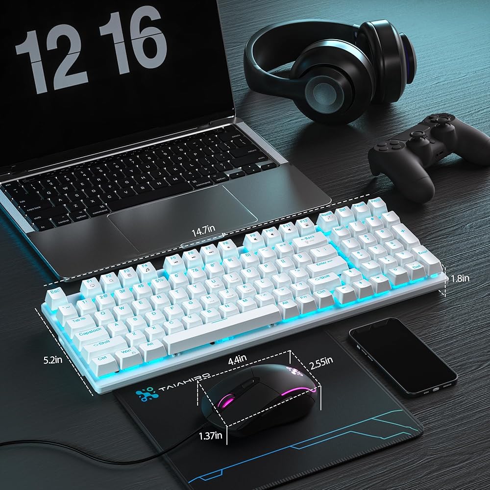 【مجموعة لوحة المفاتيح الميكانيكية والماوس/الوسادة】مجموعة لوحة المفاتيح الميكانيكية والفأرة الضوئية DPI القابلة للتعديل مع مفاتيح زرقاء هي الخيار الأمثل للاعبين والكتابين الذين يطلبون الدقة والسرعة. توفر المفاتيح المتينة ردود فعل ملموسة ومسموعة مع كل ضغطة مفتاح، مما يضمن تجربة لعب وكتابة فائقة. ومع لوحة الماوس الكبيرة المتضمنة، سيكون لديك سطح أملس ومتماسك للتحكم الدقيق في المؤشر، مما يمنحك ميزة في الألعاب والمهام سريعة الوتيرة