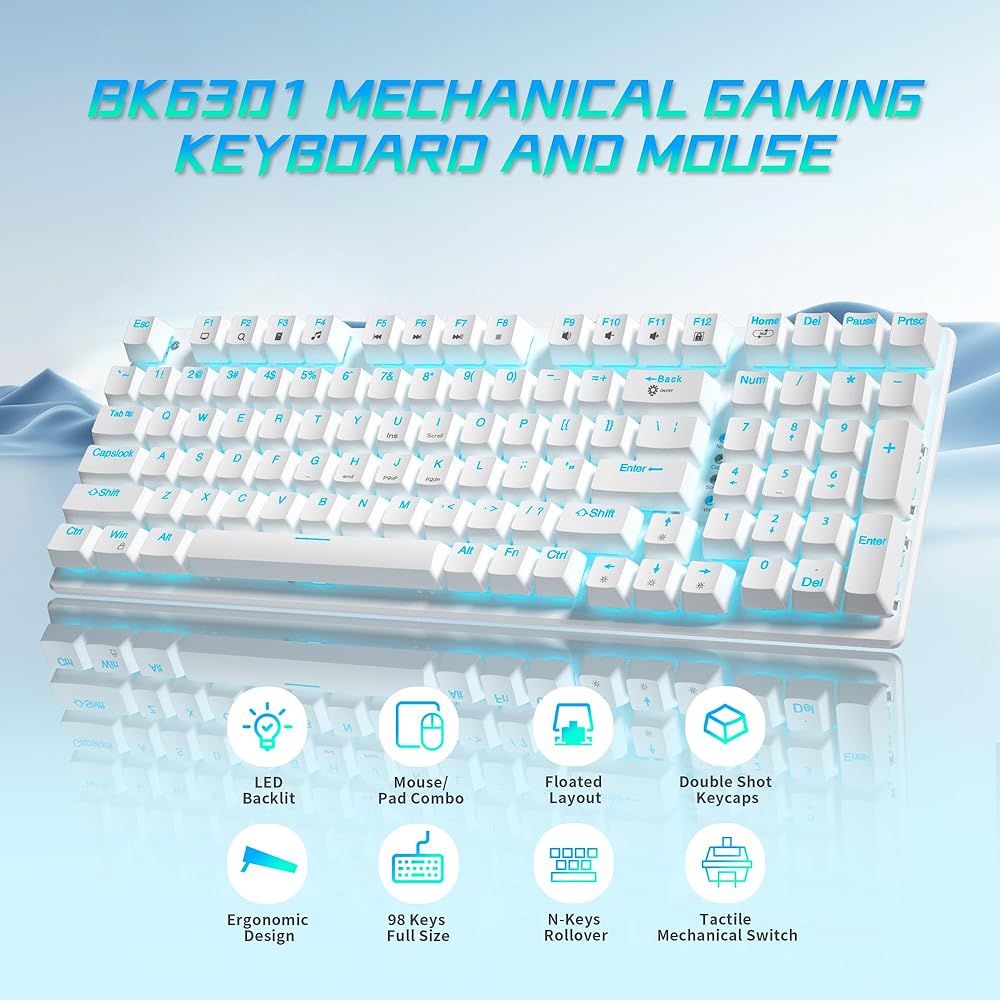 【لوحة مفاتيح كاملة الحجم】: مع 98 مفتاحًا بما في ذلك لوحة مفاتيح رقمية، توفر لوحة المفاتيح ذات الإضاءة الخلفية LED تجربة كتابة كاملة ومريحة للاعبين والمحترفين على حد سواء. تضمن أغطية المفاتيح ذات الحقن المزدوج بقاء علامات المفاتيح واضحة ومقروءة لسنوات قادمة. إنه جهاز توصيل وتشغيل دون الحاجة إلى برامج تشغيل أو برامج إضافية.