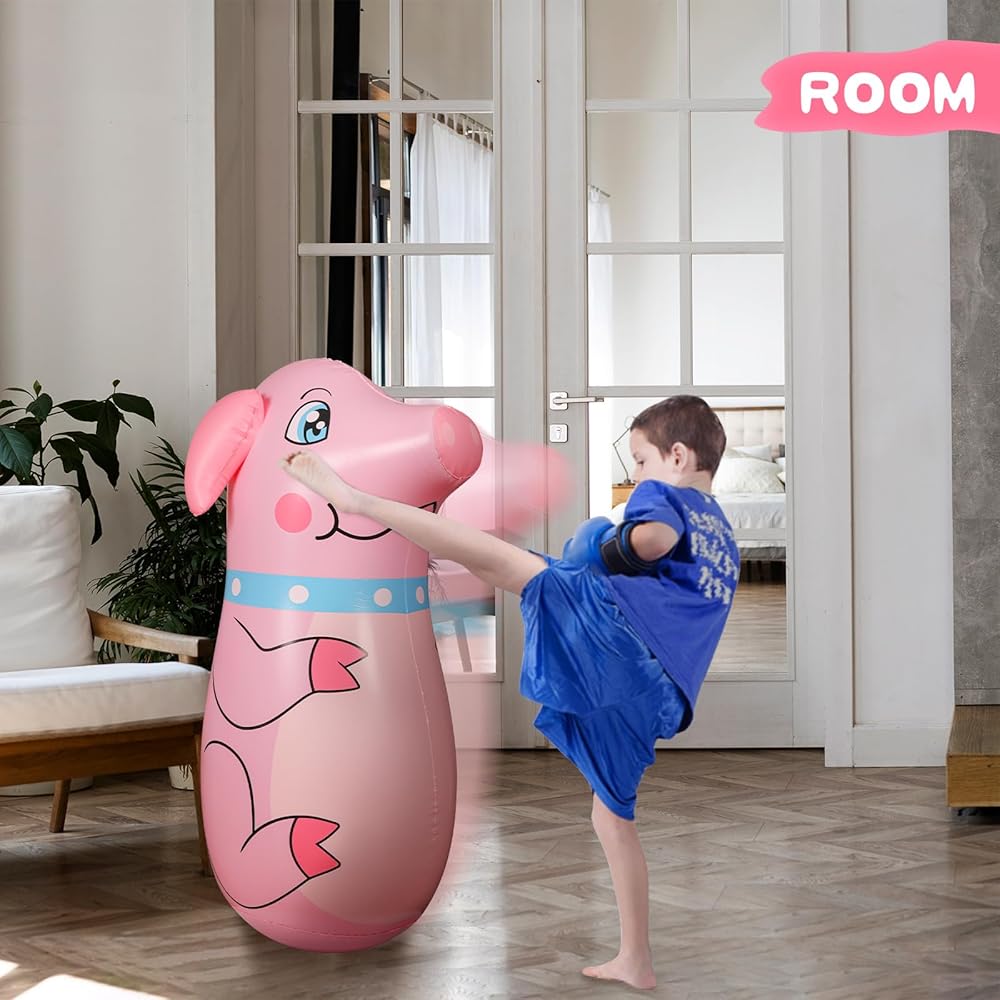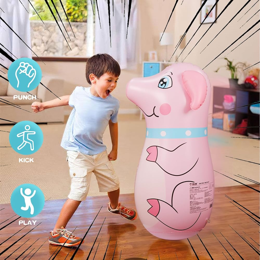 FULL OF FUN: The inflatable boxing bag is approximately 35 inch tall and is perfect for children. Not only does it provide endless hours of interactive playtime to keep kids entertained, but it also helps kids improve their concentration.